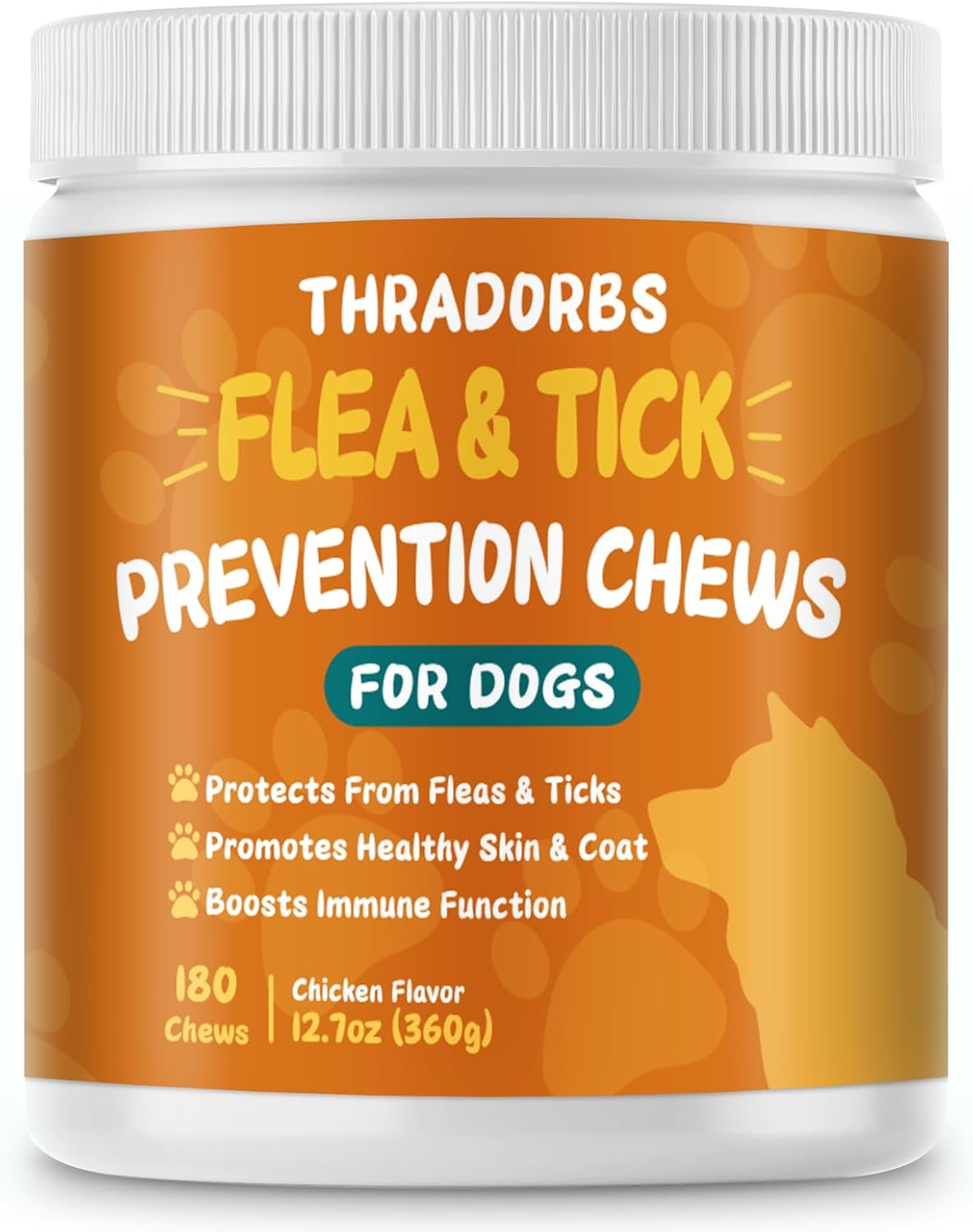 Flea and Tick Prevention for Dogs Chewables, 180 Treats, Natural Dog Flea and Tick Treatment Chewable Supplement for All Breeds & Ages, Chicken