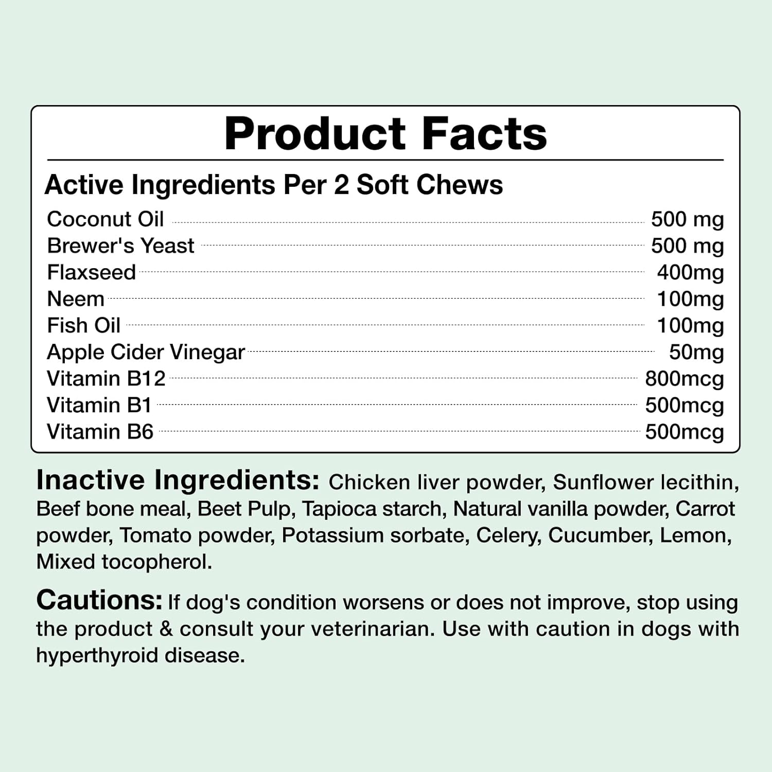 About this item Natural Flea & Tick Prevention: Defend your dogs from pests the natural way with our flea prevention for dogs - a safer alternative for itch-free protection Optimal Protection: To achieve the best outcomes, administer our chewable flea and tick prevention tablets to your dog on a daily basis. This helps establish the necessary levels in their system for effective protection. Suitable for All Breeds and Ages: Whether you’re caring for a teacup pup or a gentle giant, our flea chews for dogs are designed to keep dogs of all breeds and ages happily protected Veterinarian Formulated: Trust in the premium quality of our dog flea & tick control chews, which are formulated by veterinarians and manufactured in the USA within an FDA-registered facility Hassle-Free Administering: Forget the struggle of topical treatments - our tasty chicken-flavored chewables make administering flea and tick prevention a treat, not a chore › See more product details