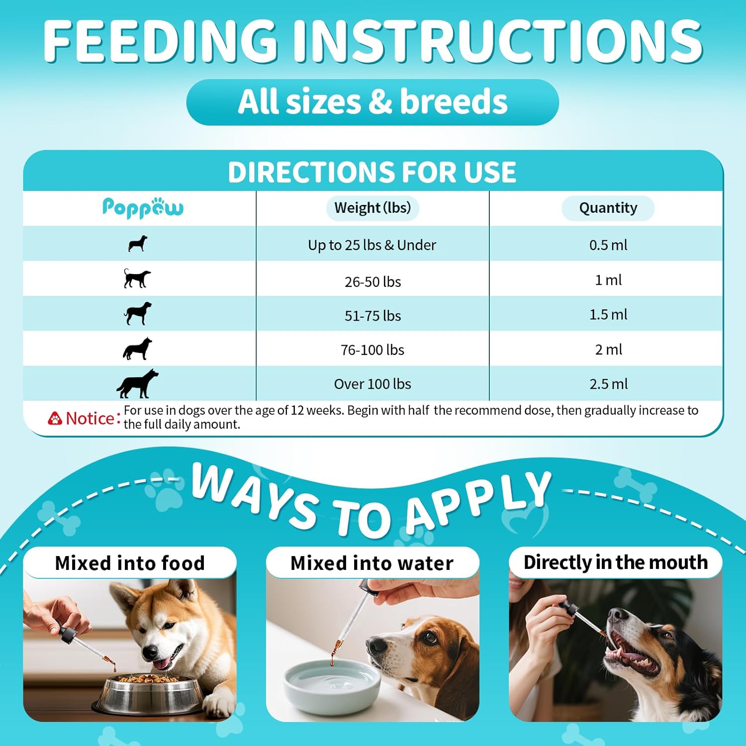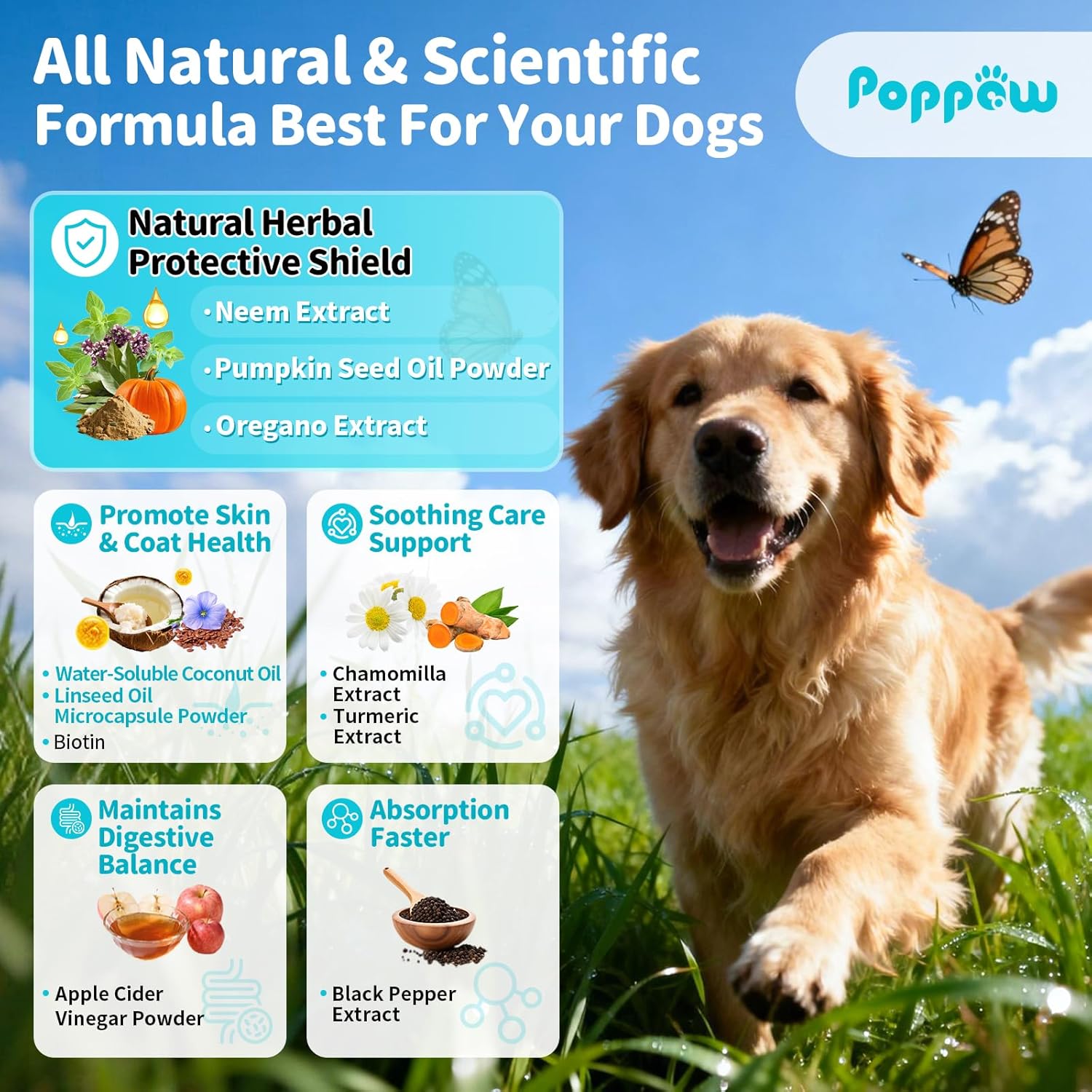 About this item 【Dog Herbal Skin & Coat & Outdoor Support】A natural flea and tick prevention support for dogs, helping nourish skin and coat from within. POPPAW’s plant-based oral flea and tick drops provide gentle daily care, supporting comfort, balance, and wellness for all breeds. 【Triple-Action Herbal Protection】POPPAW flea and tick treatment drops feature 3 key natural ingredients that work both inside and out. Neem helps maintain skin comfort and outdoor protection. Pumpkin seed oil powder, rich in omega fats and vitamin E, nourishes the skin while supporting internal wellness. Oregano extract supports skin comfort, digestive balance, and natural flea deterrence. 【Skin & Gut Support Drops】POPPAW skin & gut support drops combine linseed oil microcapsule powder, biotin, and water-soluble coconut oil to nourish your dog’s skin and coat from within. Enhanced with apple cider vinegar powder, plus a soothing chamomile-turmeric blend to calm skin and gut sensitivity. Powered by black pepper extract to maximize absorption of every active ingredient—providing full-spectrum care for your pets. 【Personalized Daily Treatment for All Dogs】Our oral flea and tick prevention drops are suitable for dogs of all breeds and sizes over 12 weeks. The easy-to-use liquid formula allows precise, weight-based dosing for tailored protection—ideal for small, medium, or large dogs. For best results, give daily for consistent herbal support. 【Tasty & Easy to Feed】No more messy topical flea solutions or harsh chemical sprays! POPPAW natural flea and tick prevention for dogs comes in a delicious chicken or beef flavor. Simply mix the drops with food, water, or give directly into your pet’s mouth. Follow the dosage guide on the package for safe, effective care. › See more product details