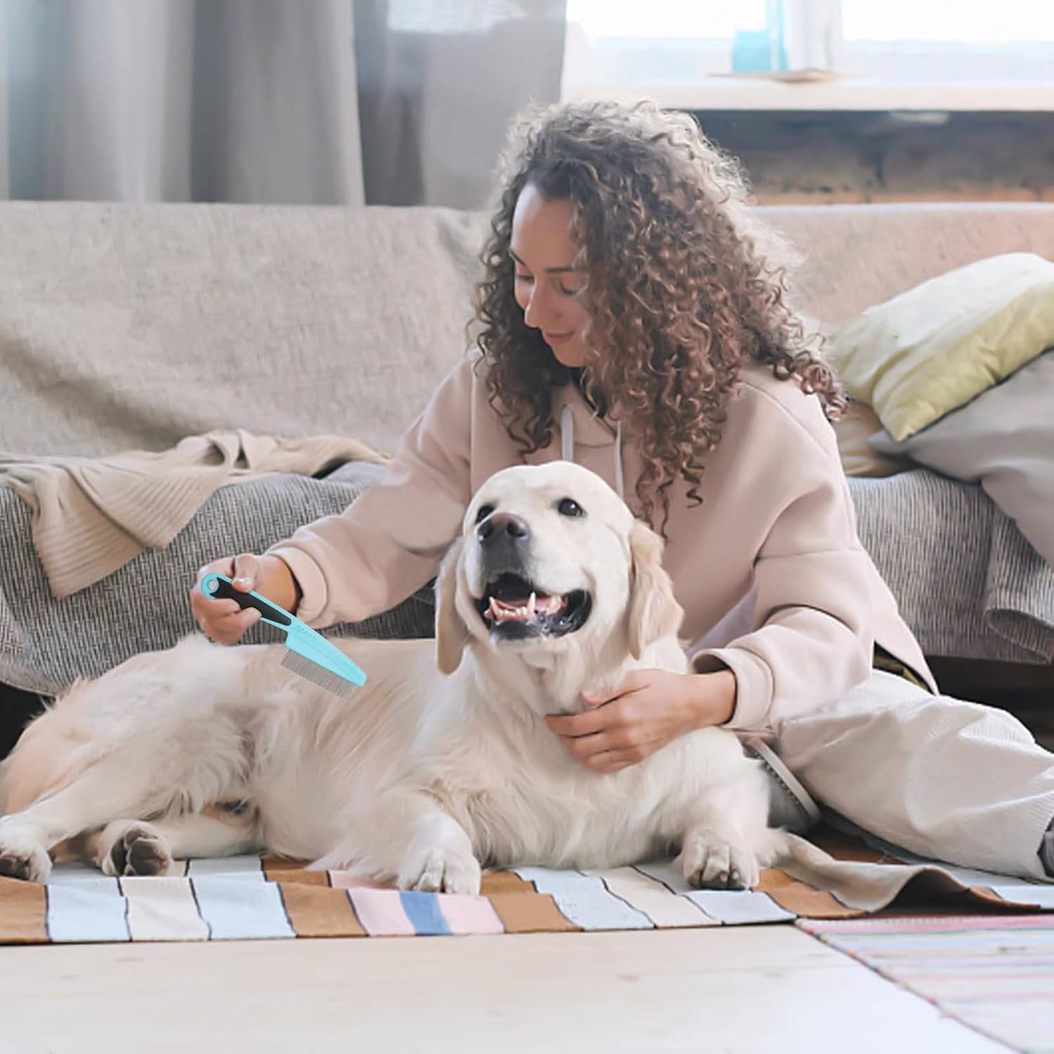 About this item High Quality: Our pet flea comb is made from premium plastic and stainless steel, ensuring balanced teeth and rounded ends to prevent stabbing, scratching or pulling, protecting the scalp and hair. It not only helps remove dead fur but also stimulates blood circulation for healthier coat growth. Designed for Fleas and Ticks: Our comb is specifically designed to tackle fleas, lice eggs, and ticks. It promotes blood circulation on the skin during grooming sessions without causing fatigue. Keep your furry friend comfortable and pest-free. Professional Pet Grooming: Our flea comb gently and effectively removes loose fur, tangles, knots, dandruff, and dirt residue. It is suitable for managing fleas, lice eggs, and ticks. Good for short, medium, long, thick, fine, or curly coats of dogs, cats, and rabbits, leaving them shiny and healthy. Good for Travel: This portable and reusable fine-toothed comb is an ideal gift for pet owners, veterinarians, and pet groomers. It easily fits into backpacks, travel bags, gym bags, and suitcases, allowing you to groom your pet's coat or tidy your own hair on the go. Sturdy : Our dog grooming comb is strong enough to quickly remove fur without the need for hours of vacuuming. However, please make sure to remove any severe tangles before using the flea comb to prevent potential damage. › See more product details