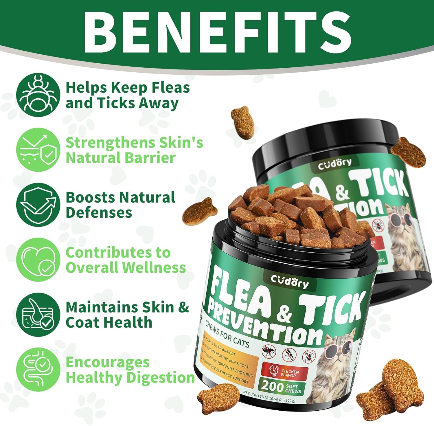 Natural Support for Flea & Tick Wellness: Looking for a gentle, plant-based alternative to traditional flea collars and sprays? Cudory's natural cat chews are crafted to help maintain your cat’s comfort and inner balance. Easy to incorporate into daily routines, they provide year-round wellness support without the mess or stress. Oral Flea & Tick Prevention for Dogs & Cats: Searching for a natural way to help safeguard your pets from fleas and ticks? Cudory’s oral flea & tick drops offer a simple, plant-based solution for both dogs and cats. Formulated with natural extracts, these daily flea drops help reduce the presence of fleas, ticks, eggs, larvae, and mosquitoes while also promoting your pet’s skin health and overall comfort. Supports Skin Health and Natural Vitality: Cudory Soft Chews nourish your cat’s natural defenses while supporting healthy skin and a vibrant coat. With consistent daily use, they help your cat stay comfortable and resilient against everyday environmental challenges. Wholesome Ingredients You Can Trust: Made with coconut oil, flaxseed, brewer’s yeast, and other carefully selected natural ingredients — with no artificial additives or harsh chemicals — Cudory chews offer gentle, reliable support for cats of all ages, from playful kittens to cherished seniors. For Pets of All Ages, Breeds, and Sizes: These liquid flea and tick prevention are fit for pets of all ages, breeds, and sizes. For best results, use 1-2 times daily based on your pet's weight. › See more product details