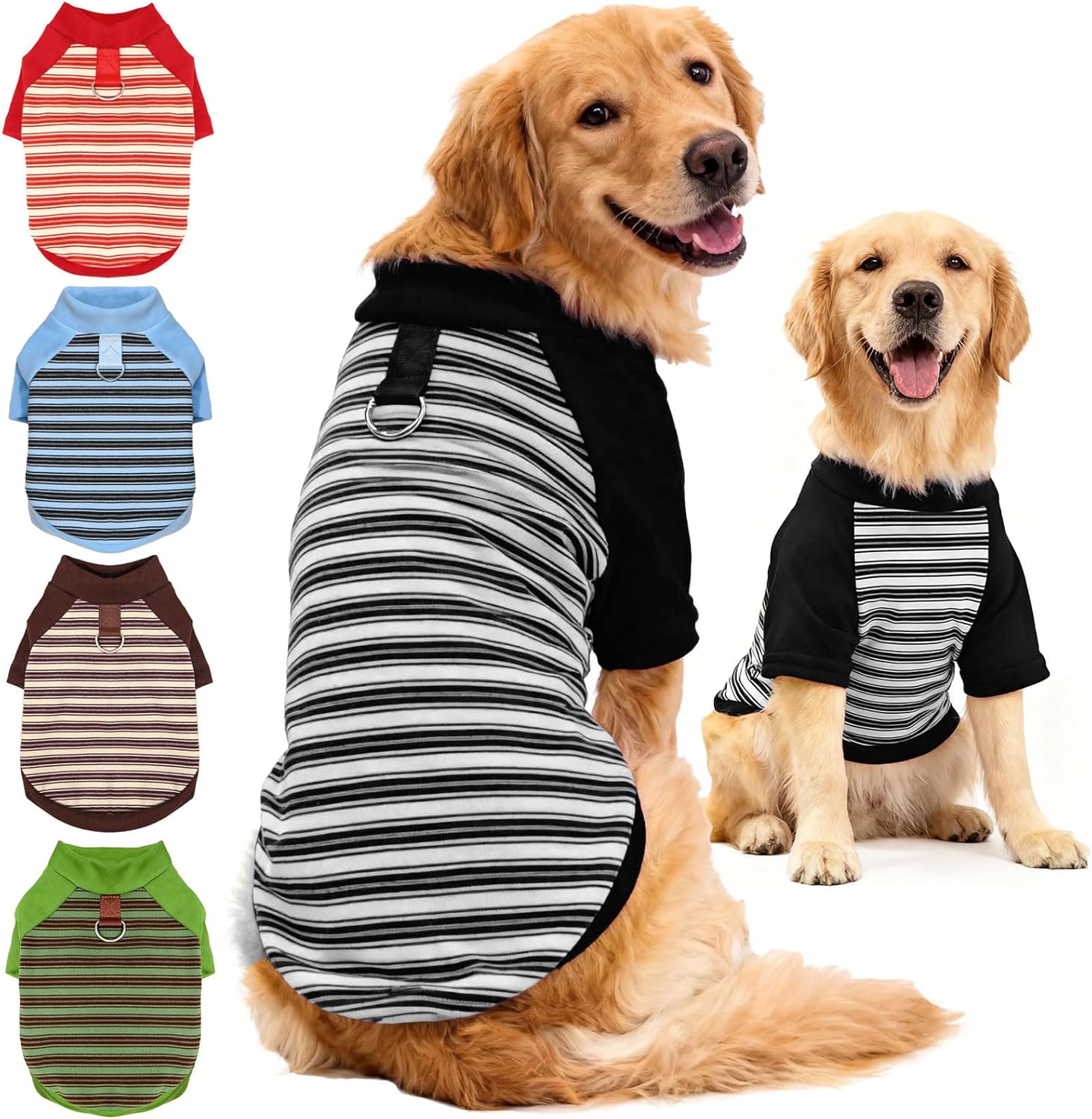 About this item 【Shirts for Dogs】Available in 8 size,5X-Large:neck 20.4 Inch、chest 32.2 Inch、back length 24.4 Inch.If your pet is between two sizes,please choose the larger size,larger to ensure that your pet wears comfortably. (Note: 3XL size is not available; please select the size that best fits your pet.) 【Soft and Comfortable Fabric】Made from high-quality fabric—stretchy, soft, comfortable, lightweight, and breathable, gentle on your pet's skin. This fleece sweater for dogs will keep your furry friend warm during cold weather. 【Convenient Leash-Ring Design】This dog sweatshirt features a D-ring on the back for easy leash attachment—no extra collar or harness needed. Perfect for short walks, outdoor adventures, or daily errands, this small dog clothing makes every outing effortless. 【Stylish Color Combinations】The classic striped design is super stylish, with five different fashionable color combinations to choose from. It is very cute for both male and female pets to wear. The dog tshirt isn't too thick or too thin, making it perfect for indoor wear in autumn and winter. 【Small Medium Large Dogs & Cats】This adorable dog clothes is designed for both dogs and cats, it is the most beautiful gift for your lovely pets in your house. It fits small, medium, and large dogs and cats. Easy to clean—hand wash or machine wash. › See more product details