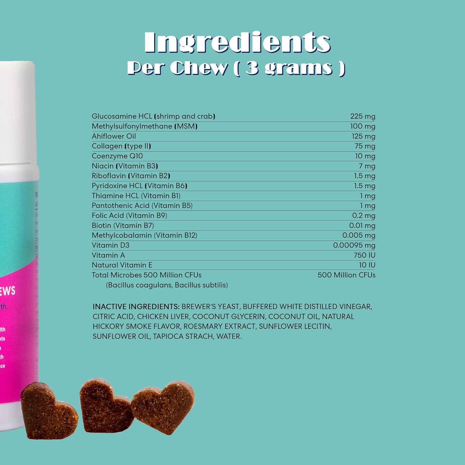 About this item All-in-One Solution: No more juggling multiple supplements - our 10-in-1 formula covers everything from joint support to coat health Natural Ingredients: Made with plant-based oils and probiotics, and free from harsh chemicals Delicious & Easy to Give: Formulated with chicken liver and natural hickory smoke flavor, your dog will love these tasty chews Supports Dogs of All Sizes: Dosing is easy—just follow the simple guide based on your dog’s weight › See more product details