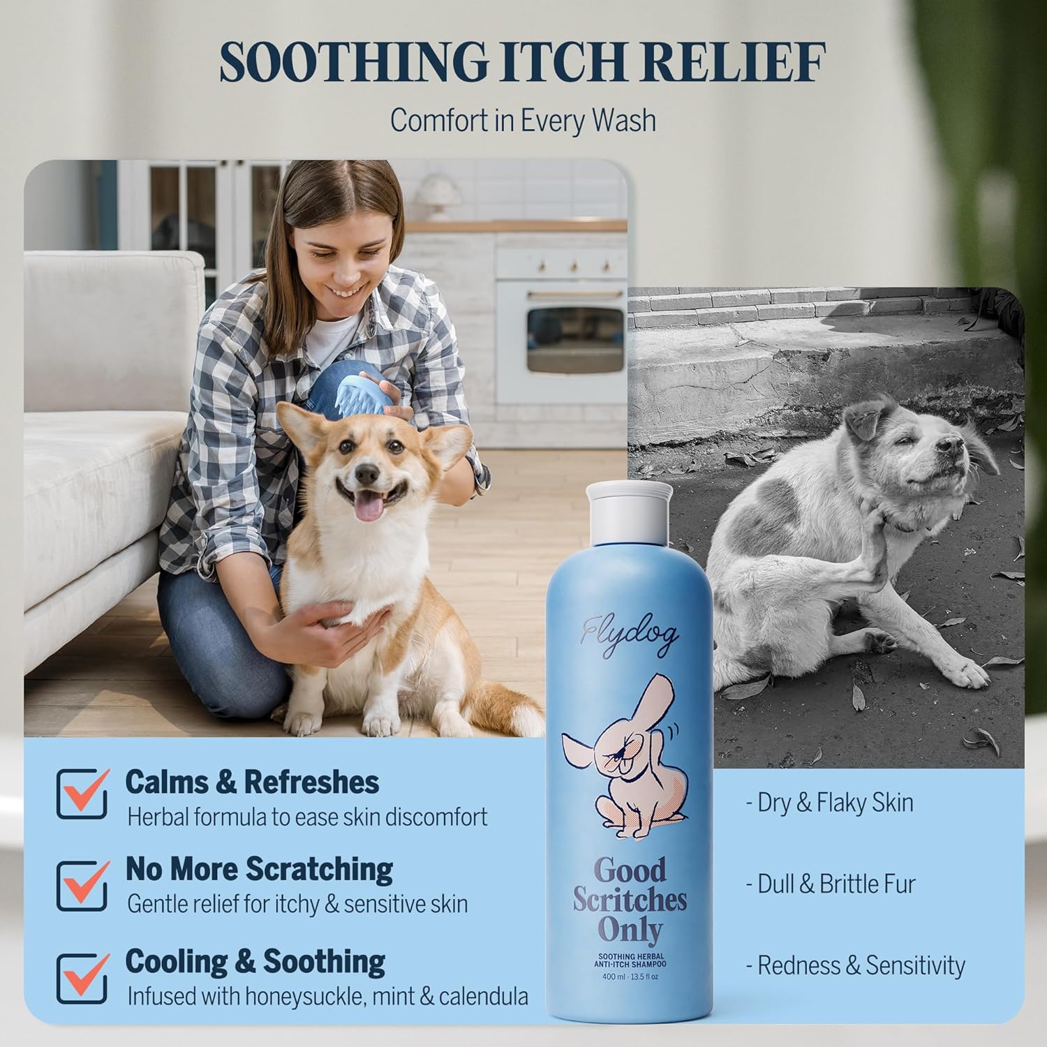 About this item Pure Herbal Formula – Made with natural botanical extracts, without artificial fragrances or harsh chemicals, offering a gentle, safe solution for your pet's skin Natural Itch Relief – Enriched with Centipeda Minima Leaf Extract and Sophora Flavescens, known for their soothing properties to help reduce skin irritation and provide relief Restores Skin Health – Sophora Flavescens balances oil production and tightens pores, while coconut oil nourishes and conditions the fur for a soft, shiny coat Deep & Gentle Cleansing – Creates a rich, fine foam that effectively rinses away dirt and excess oil, suitable for all coat types and sizes SPA-Level Home Grooming – Premium coconut oil, Centipeda Minima, honeysuckle, and menthol work together to soothe sensitive skin and deliver a luxurious bathing experience Moisturizing & Nourishing – The amino acid-based formula combined with mild surfactants ensures long-lasting hydration, keeping your pet’s skin healthy and fur beautifully soft › See more product details