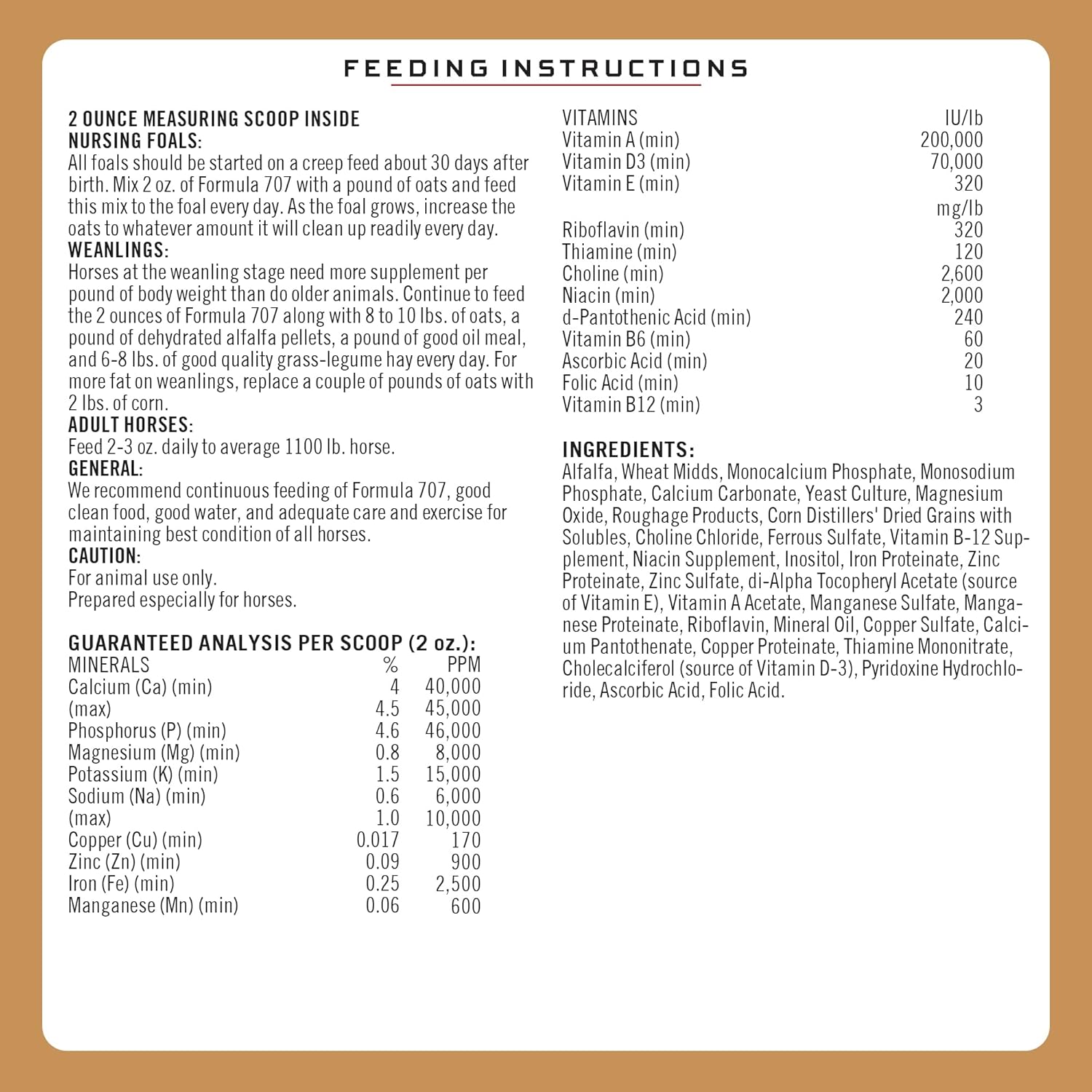 About this item Achieve superior health and condition in horses of all ages. COMPLETE vitamins and minerals ensure your horse gets everything it needs to remain sound and healthy. Proteinated trace minerals are designed to survive the digestive process and maximize absorption. Palatable, oat-sized pellets are designed for easy feeding without waste. Formulated and manufactured by John Ewing Company in Colorado, USA, where we've been Helping Horses Succeed Since 1946 › See more product details