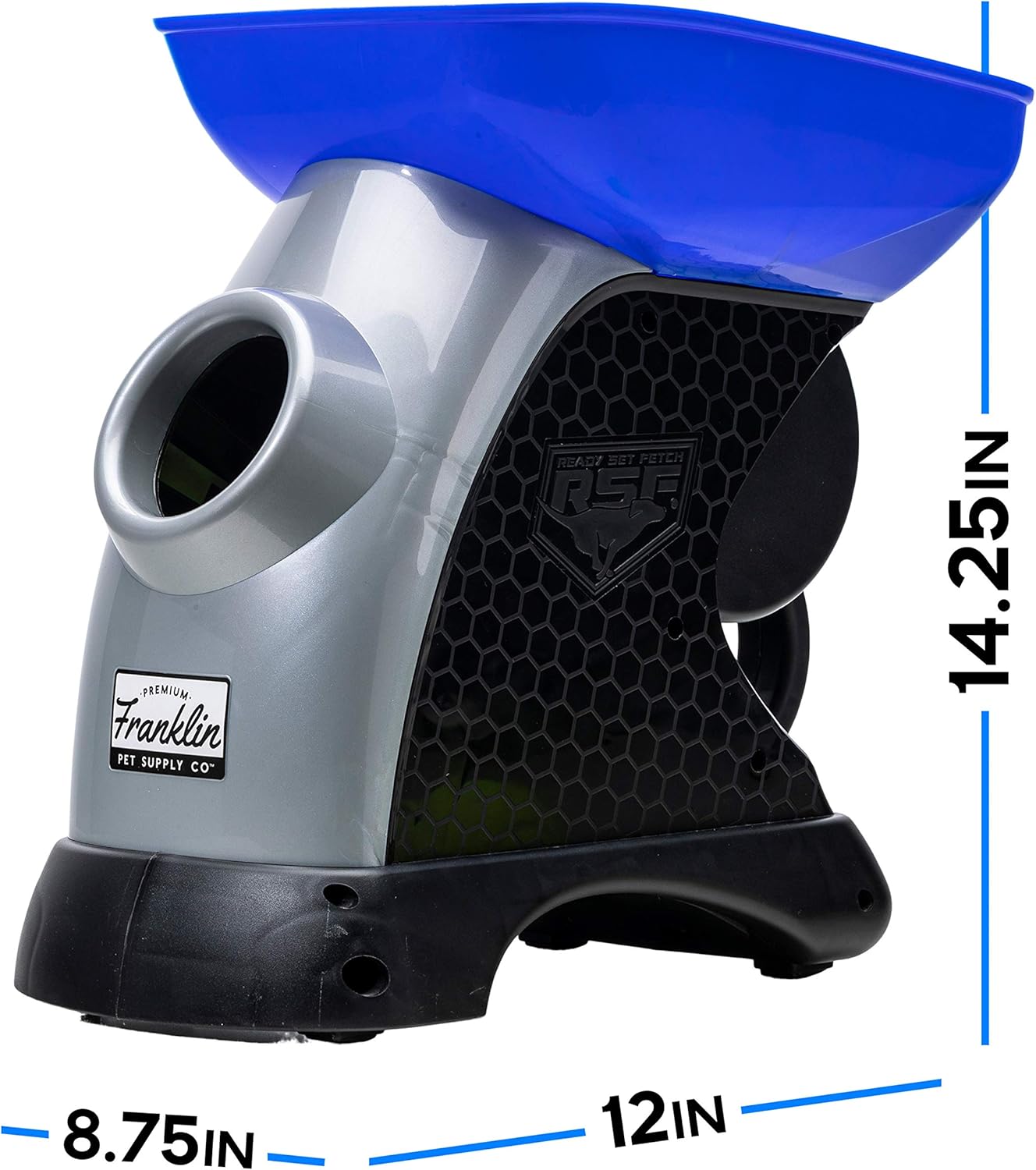The Franklin Pet Supply-Ready Set Fetch Automatic Tennis ball launcher is the ultimate interactive pet toy. Your dog will love the distance this unit will launch the balls. They will keep coming back again and again. Once your dog places the standard sized tennis ball or all-weather ball into the top of the feeder, the internal mechanism will process the ball through its chamber and an optional warning sound will be heard prior to launch for safety. The set includes a power adapter, official RSF tennis ball, and specially made all weather launcher ball. Take this toy anywhere with its built-in carry handle and battery compartment. Batteries sold separately!
