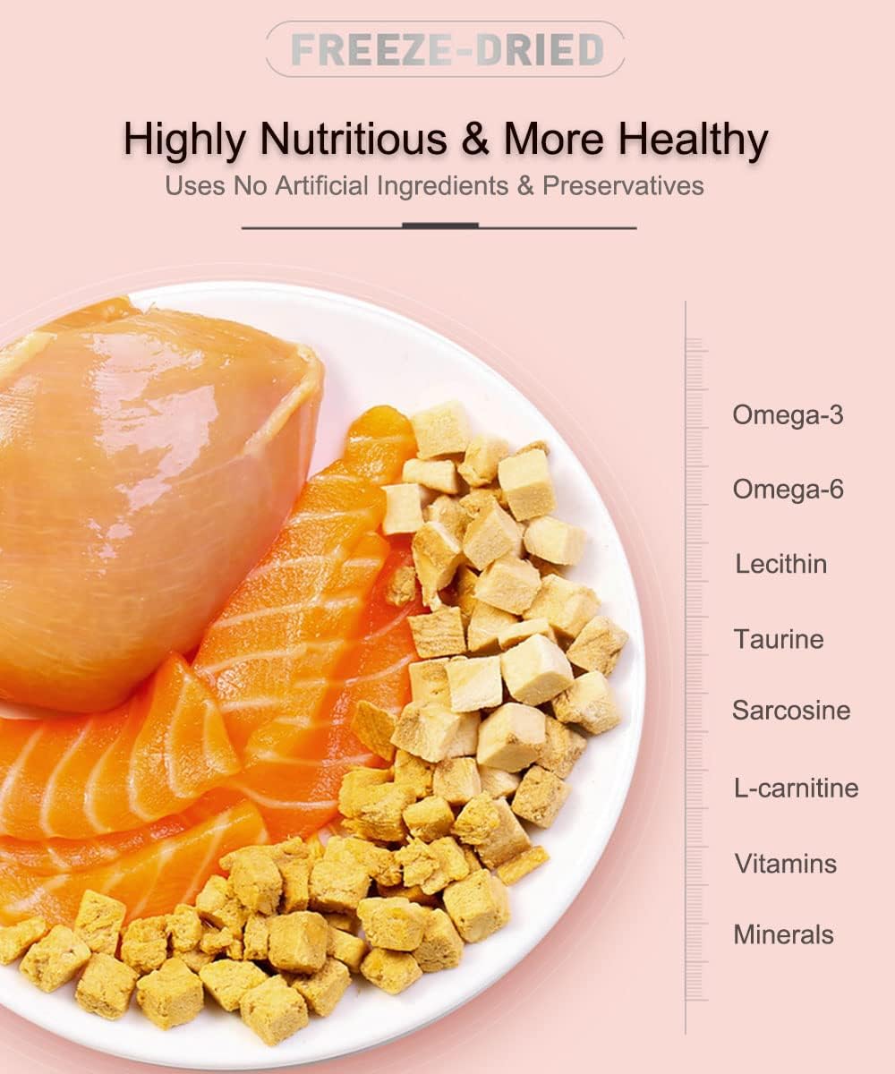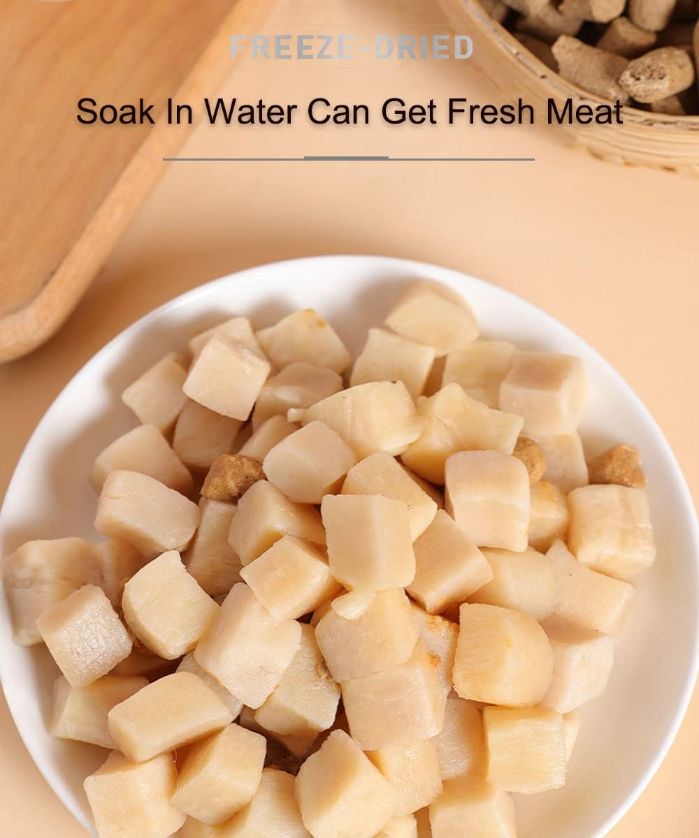 About this item SINGLE PROTEIN GOODNESS – Designed for Both Cats and Dogs, High Protein, Free of Additives, Preservatives, and Gluten. Come in 1/3 Inch Cubes, Our Single Protein Treats are an Perfect for Training or Mixing with Other Pet Food to Boost Protein Intake. EASY TO DIGEST SIMPLE ON THE GO TREAT– We Start with Fresh Meat Diced into Small Bites, Then into Our Freeze-Dryers, Where We Remove the Moisture Not the Nutrients. An Excellent Source of Protein and Amino Acids, Just as Your Dog or Cat Would Eat in Nature. HEALTHY PET DIET – Nature has Absolutely Packed These Treats with Nutrients, Including Vital Fatty Acids Like Omega 3 and 6, Magnesium, Potassium, Zinc, Vitamins A, B, D and More FEEDING RECOMMENDATIONS – Protein Treats Can be Given Whole or Easily Crumbled as a Tasty Incentive at Mealtime. Moistening the Low-Calorie Treat Reactivates the Meat’S Aroma, Making This Reward a Great Way to Train Your Pets. 3 Feeding Recommendations :1. Feed Directly 2. Soak in Water, Get Fresh Meat 3. Mix with Pet Food PORTABLE BAG– Take the Treats with You to the Park, On a Road Trip, or Wherever You’Re Going, As the Easy-To-Close Bag Keeps Your Pet’s Next Snack Flavorful and Fresh. Please Remember to Be Patient when Giving Your Pet a NEW TREAT. It May Take Some Time Before They Start to Love Them. › See more product details