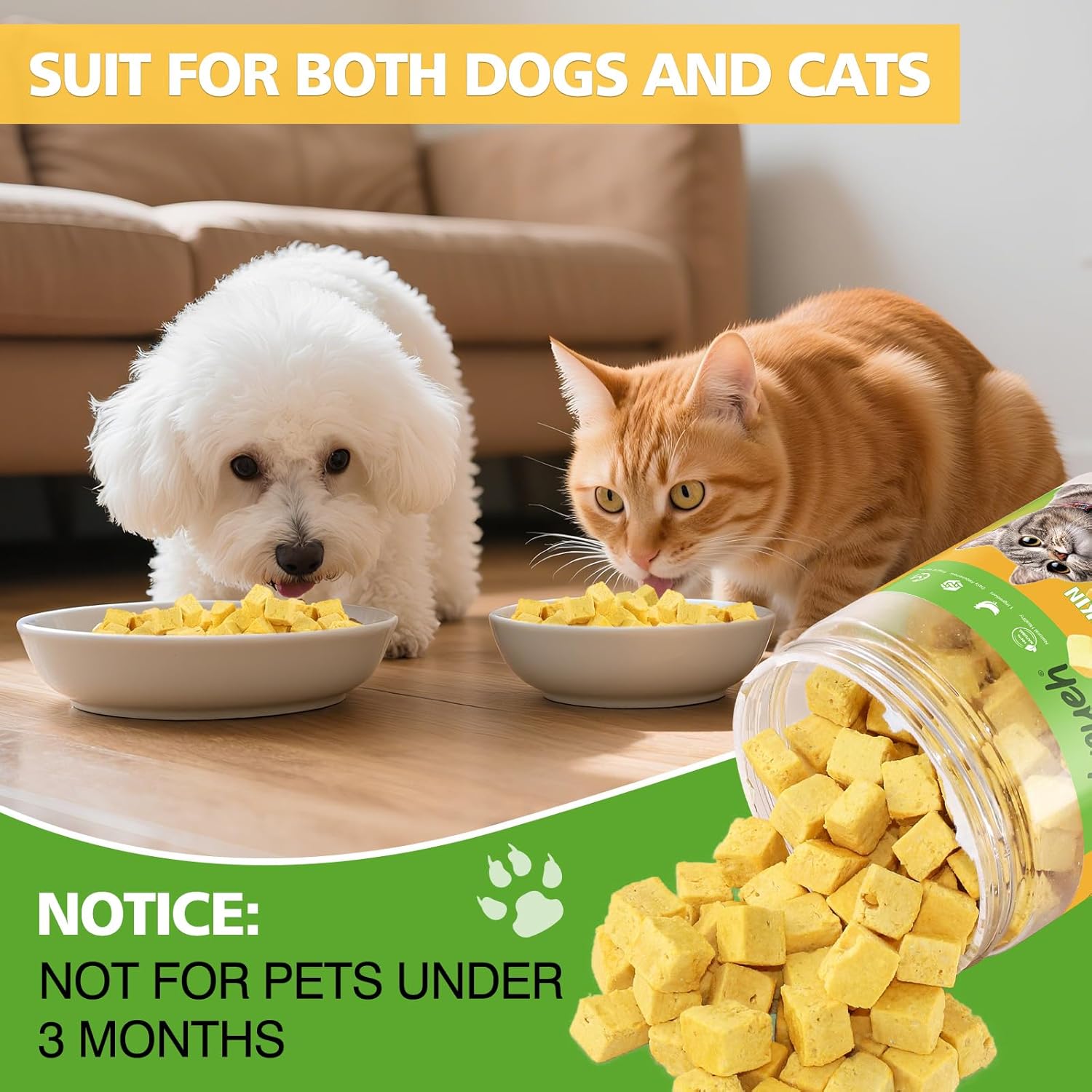 About this item 【100% Natural Ingredient 】 Made with only real chicken breast and pumpkin, our freeze-dried cubes contain no additives, fillers, or preservatives. A healthy treat you can trust. 【Rich in Protein & Fiber 】 Chicken provides high-quality protein to support muscle health, while pumpkin is a natural source of fiber that promotes healthy digestion. 【Freeze-Dried for Freshness】Gently freeze-dried to lock in nutrients, flavor, and aroma without compromising natural goodness. Your pet gets the best every time. 【Perferc for Cats & Dogs 】 These nutritious bites are safe and delicious for both dogs and cats. Great for multi-pet households looking for one simple snack solution. 【Great for Training or Topping】 Ideal as training treats, daily rewards, or crumbled as a food topper to boost mealtime excitement. › See more product details