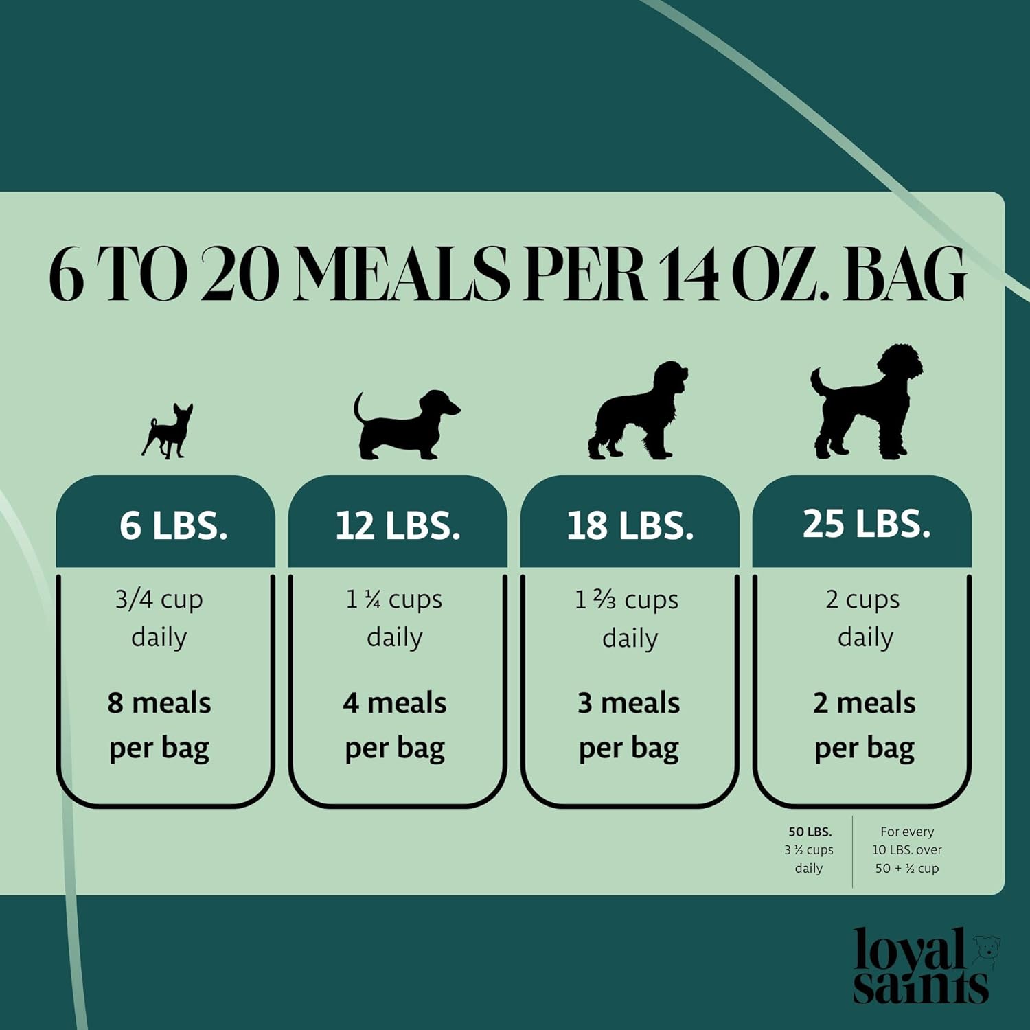 - Directions: Provide up to twice the recommended amount for puppies and for pregnant or nursing dogs. Keep in mind that individual feeding needs can vary based on factors such as age, breed, and activity level. Use the feeding guidelines as a starting point, and adjust portions as needed to support your dog's overall health and performance. Serving Instructions Weight of Pet (Lbs.) Daily Feeding Guidelines 6 3/4 cup 12 1 1/3 cup 18 1 3/4 cups 25 2 1/3 cups 50 4 cups For every 10 lbs. over 50 + 1/2 cup