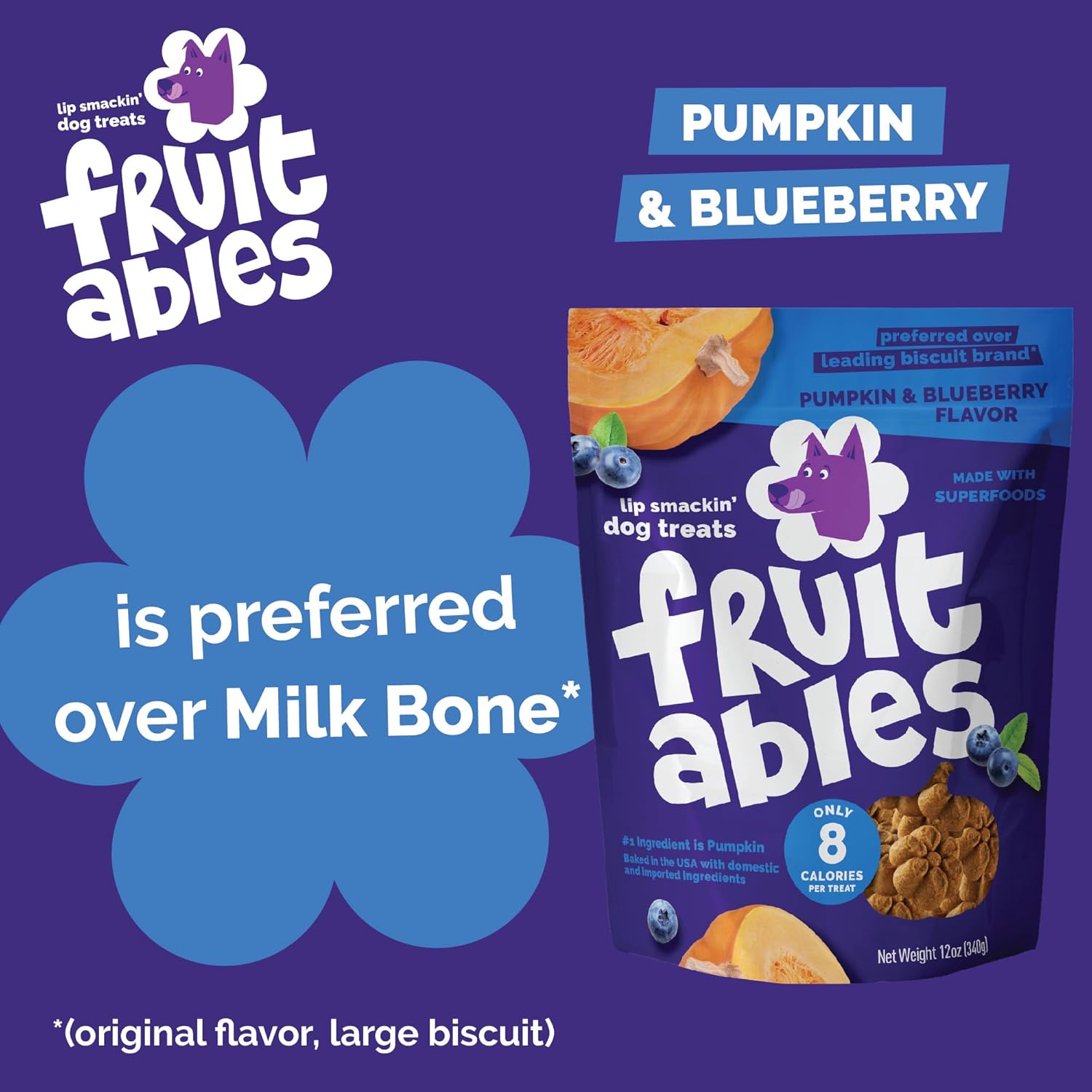 - Model Name: Fruitables Healthy Dog Treats Pumpkin & Blueberry| Made with Pumpkin for Dogs | Low Calorie Treats for Dogs | 12 Ounces