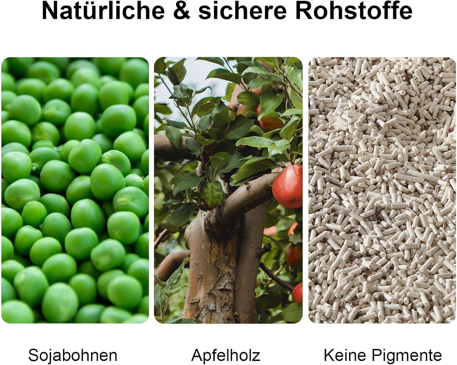 About this item Dust-free & low tracking: Ideal for cats and owners with allergies, with 99.9% dust-free and hypoallergenic litter formulation. Combines premium texture tofu litter and natural apple wood litter pellets for maximum clumping, keeping kitty paws and floors clean. Quick clumping & flushable: Absorbs in 2 seconds, forms clumps in 3 seconds, and scoops easily due to its anti-stick feature. Biodegradable tofu cat litter can be flushed away, saving time. (Reminder: Do not flush excessive litter at once.) 24/7 odor control: Contains natural apple wood pellet deodorizer, ensuring the litter box remains fresh and odor-free for extended periods. Quickly absorbs urine and reduces unpleasant smells, keeping your home smelling fresh. Easy to store: Lightweight tofu cat litter is easy to carry and store. No need to worry about moisture exposure after unpacking, as storage is no longer a problem. Suitable for most pets and cat litter boxes. › See more product details