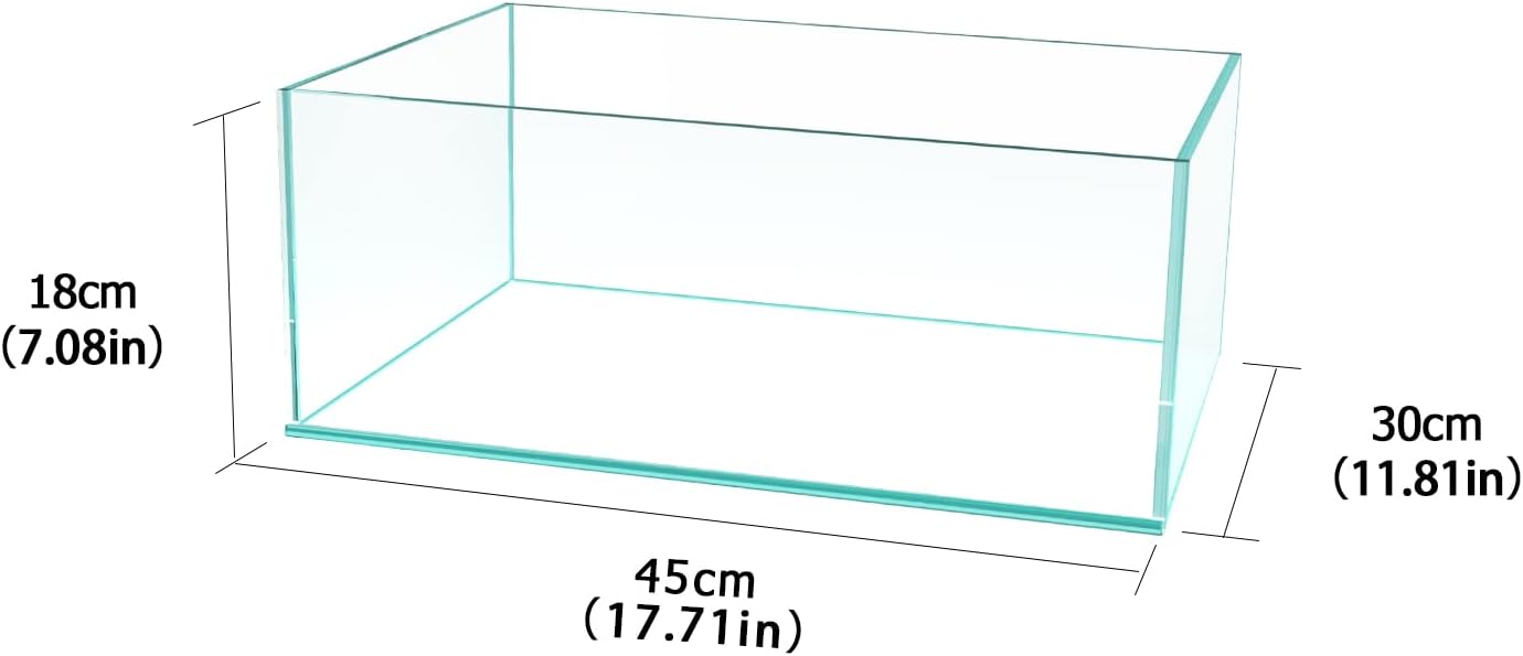 About this item Fzone Anata Series is a regular rimless tank often seen as a staple in aquarium industry, sizes range from 2-80 US Gallons. Use the Anata Series aquariums to enhnace your aqauscape, plants, and/or livestock. All Fzone Rimless Aquariums Including the Anata Series are engineered from NovaClear Ultra-White Glass, & made with a low-iron content that eliminates the traditional green/blue tint often seen in regular aquariums, this results in a light transmittance of 91.5%. Anata Series come with 45° mitered edges & each tank is water tested for 72 hours. 45° Clear-Cut Mitered Edges offer unsurpassed strength & rigidity while also providing a seamless view of your aquarium. Angled joints allow for more surface area for the silicone & will create a strong bond with our engineered silicone. In addition each tank is tested for 72 hours before leaving the factory. The Fzone NovaClear Rimless Aquarium comes with a transparent laser etched logo embedded in the glass in the upper right-hand corner. This provides a almost invisible experience & ensures your rimless aquarium is a genuine Fzone Aquarium. Fzone Anata Series include a pre-installed a black foam leveling mat. Model:L45-W30, 6.4Gal 17.71W×11.8D×7.08H in(45x30x18cm). 6mm glass thickness. › See more product details