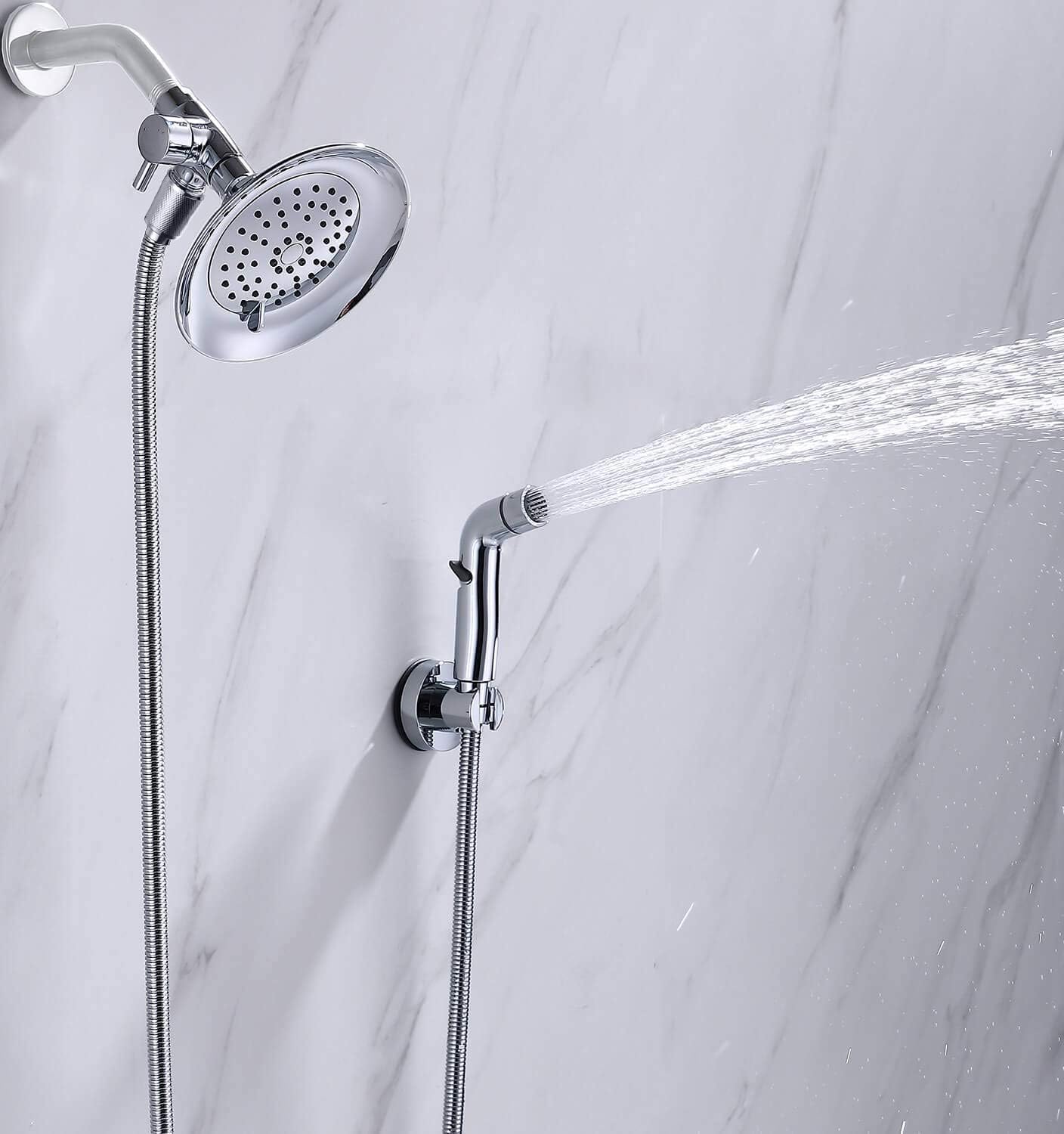 About this item ►COMPLETE MULTIFUNCTIONAL DOG SHOWER SYSTEM: Come with a shower sprayer, Suction Cup Hook, 8-foot hose and indoor shower diverter(NO SHOWER ARM). Install in your shower and easily switch between your showerhead and the pet shower sprayer. Not only the best solution for dog shower indoor, but also can be a good idea for cleaning your baby, tub,toilet and floor ►DUAL FUNCTIONAL SPRAYER WITH CONTROL LEVER: Powerful water jet function make it easier for you to wet your pet's thick fur, rinses away dirt, shampoo. Gentle water flow function is more suitable for your baby and small pet, which won't scare them. The lever allows you to shut off the water and calmly shampoo your pet. The lever can't be a shutoff valve for long. It just for the convenience of adjusting the flow (full on to full off) with one hand ►DOG SHOWER ATTACHMENT: The suction cup hook. NO DRILLING, can be firmly adhered to the smooth surface. 8 feet Extra Long Flexible Stainless Steel Hose, Flexible and durable. Solid metal shower diverter, no fear of snapping off ►STANDARD AND EASY INSTALLATION: 1/2 IPS female inlet. Universal for most of USA bath room. Do it yourself, Follow the manual and it only takes a few minutes without plumber's help ►PACKAGE INCLUDES: Handheld shower sprayer, 100 inches metal flexible hose, suction cup hook and shower diverter › See more product details