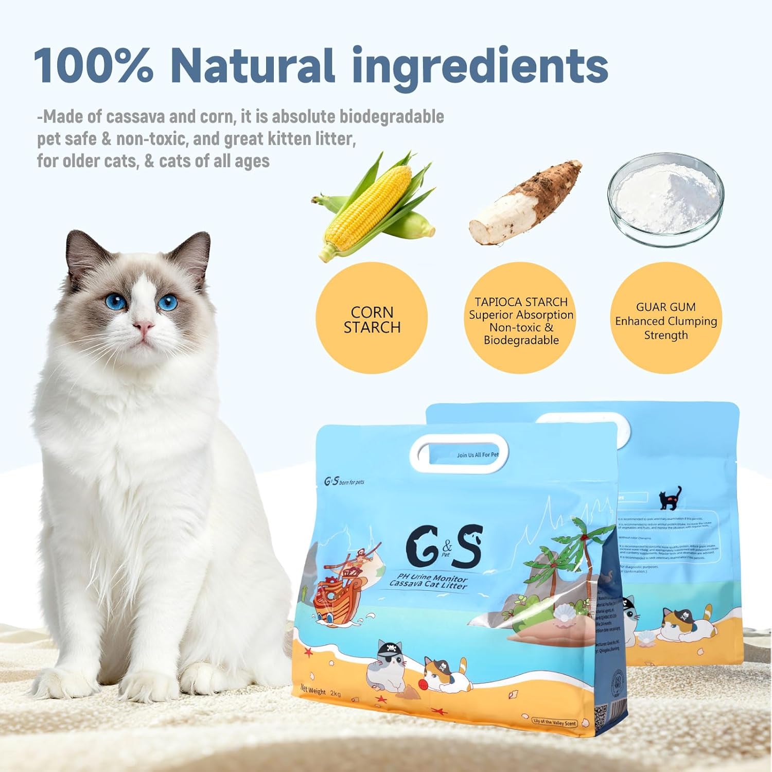 About this item G&S: Non-Stick Tapioca Litter,Automatic Litter Box Friendly,G&S Tapioca Cat Litter, Cassava Cat Litter, Automatic Litter Box Friendly,Non Sticking, Rapid Clumping, Water Absorbent, Dust-Free,(4.5lb×2bags) › See more product details