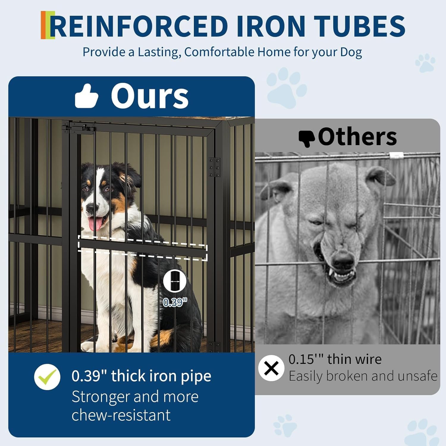 About this item Spacious Double Dog Crate for Two Pets: Measuring 86.61x27.95x32.5 in, this double dog crate furniture comfortably accommodates two dogs, giving each pet ample living space with a secure divider for privacy and comfort Easy Access with Three Secure Doors: Featuring two front doors plus a side door, this indoor double dog cage allows flexible entry and exit for your pets. Each door includes a secure lock to keep your dogs safe and secure at all times Multi-Functional TV Stand & Storage: This XXL wooden pet house isn't just a large dog crate-it also functions as a stylish TV stand or side table. The expansive tabletop is perfect for decorations, storage baskets, or your home entertainment setup Heavy Duty & Durable Construction: Made from premium carbon steel and sturdy engineered wood, this heavy duty dog kennel is built for lasting strength, stability, and everyday use-making it a reliable and attractive addition to your home Simple Assembly: Your pet cage house comes with a detailed instruction manual and all necessary hardware, so you can set up quickly and easily. Enjoy both practicality and modern style for you and your pets › See more product details