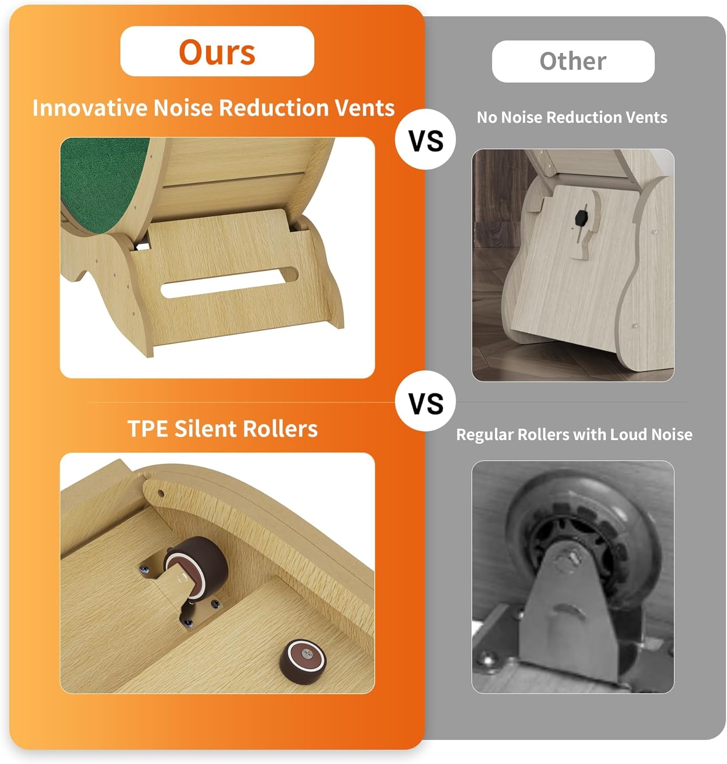 Give your indoor cat a safe, quiet, and fun way to stay active with this large cat exercise wheel featuring a detachable carpet, sturdy design, and easy assembly!Highlights at a Glance:- Large cat exercise wheel for indoor cats - Low noise cat treadmill with silent rollers - Cat running wheel with detachable carpet - Sturdy base and safe design for feline fitness - Cat treadmill with wheel locks and easy assembly - Spacious 43 inch large cat wheel - Cat running treadmill for playful and healthy kittiesSpecification:Material: Engineered WoodOverall Dimension: 43.3x43.3x45.43 inchInner Diameter: 39.37 inchBase Width: 14.6 inchCat Ball Stick Height: 28.15 inchPacking List:1xCat Wheel1xInstruction ManualNote:Adult assembly is required. Please follow the included instructions carefully. Make sure all parts are securely fastened before use.This exercise wheel is designed for cats. Do not use for other pets or animals.Some cats may need time to get used to the wheel. Use treats and gentle encouragement to help your cat become comfortable.