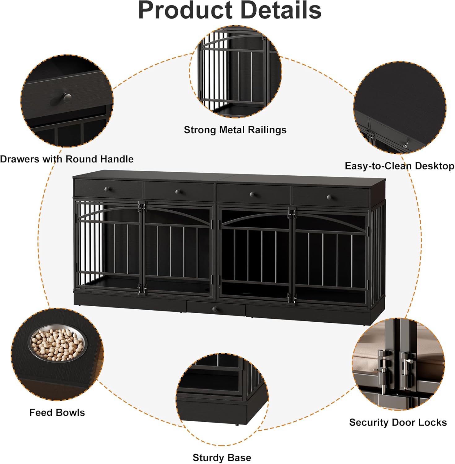 - Included Components: main structure (wooden+metal), drawers, feeding bowls