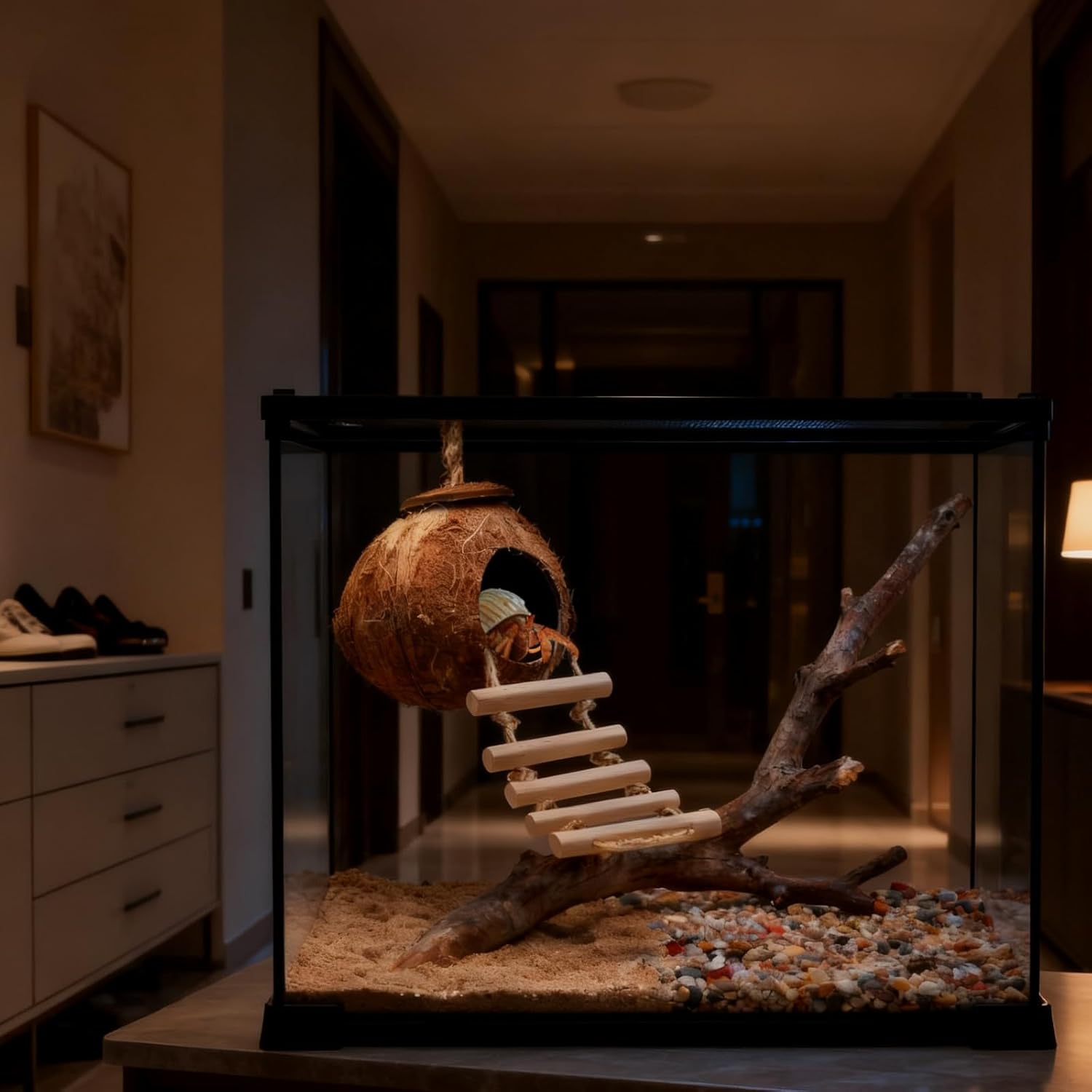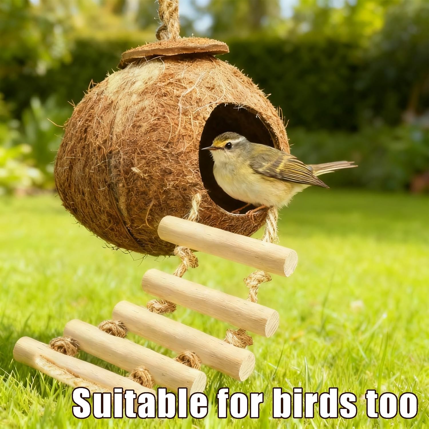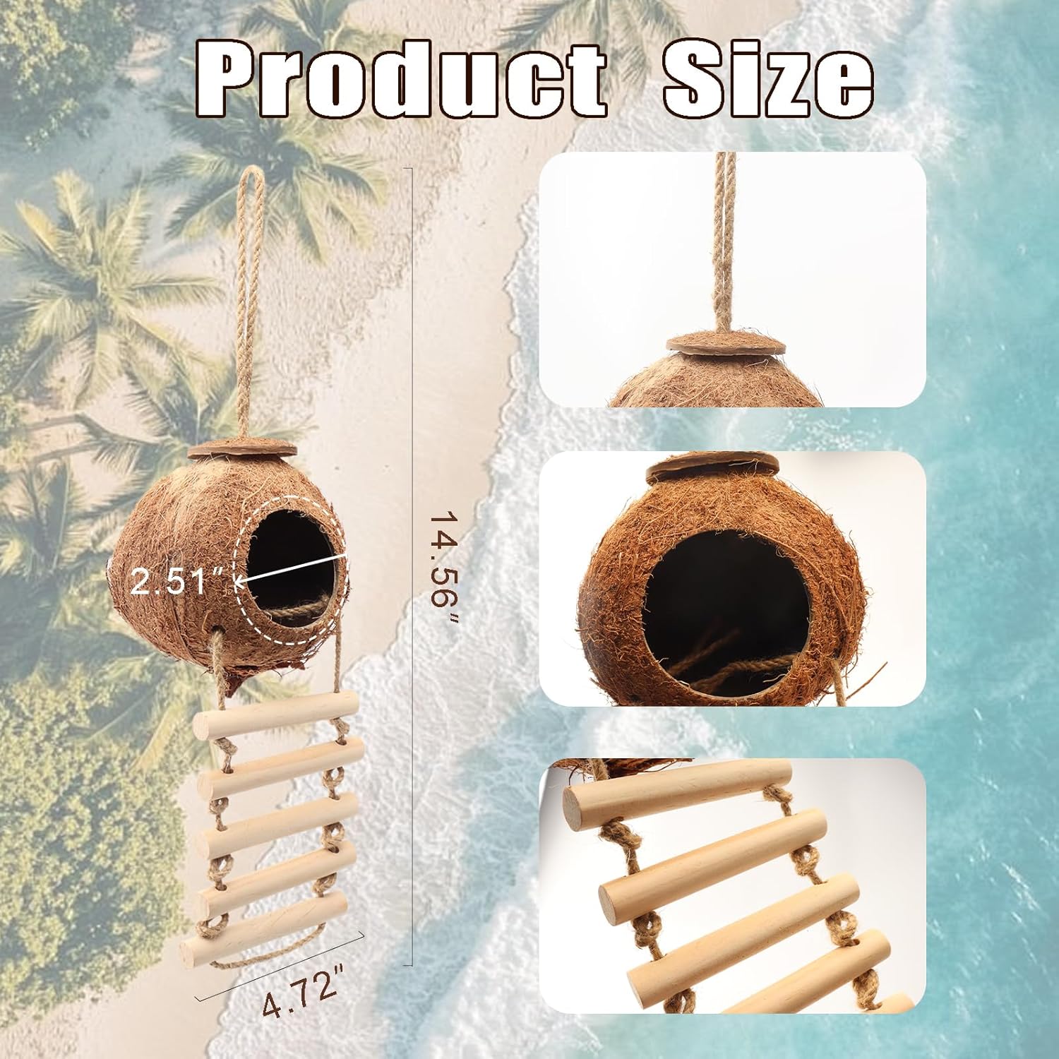- Included Components: 1 coconut shell house and 1 removable wooden ladder.