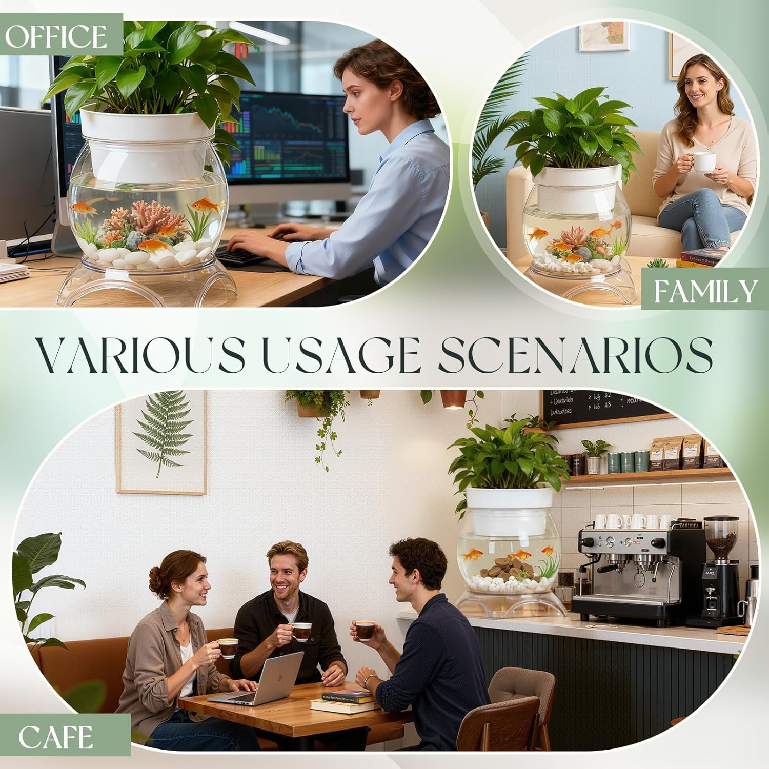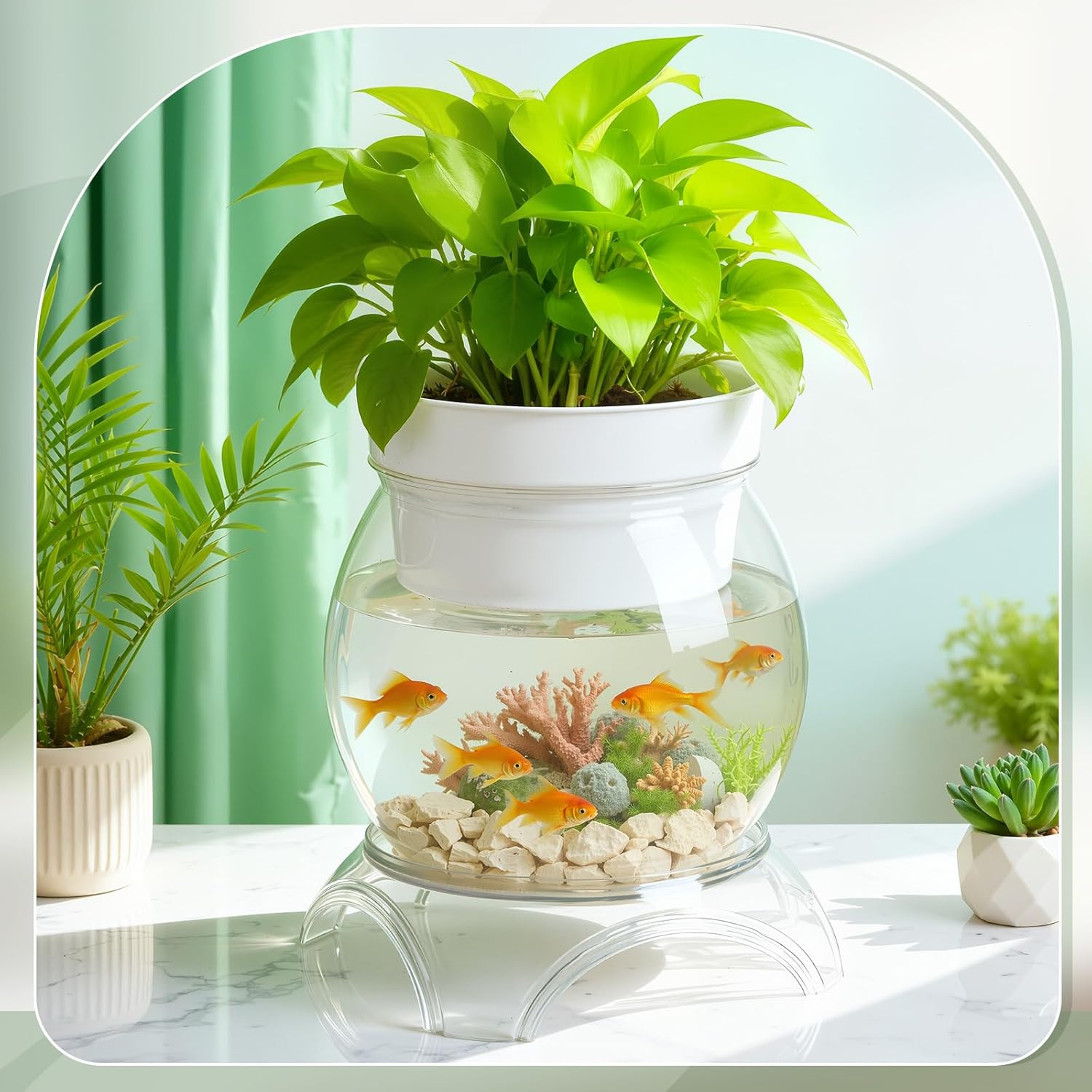 Features: Easy Assembly & Maintenance: The plastic Fish Tank With hydroponic top and base features a simple structure that could be assemble without extra tools. It has a compact size that makes cleaning convenient—you can wipe the inner wall and replace water. The hydroponic top and base are detachable, which helps keep the plastic Fish Tank tidy and reduces daily care time, suitable for both beginners and busy users. Ideal for Small Spaces: The large plastic fish bowl has a compact size that fits well on desks, windowsills, or small shelves. With hydroponic top and base combines fish-raising and plant-growing in one, saving space while adding greenery and aquatic fun. It won't take up much area, making it a great choice for apartments, dorms, or small offices. Specifications: Material: plastic Color: clear Size: The Plastic Fish Tank with Hydroponic Top and Base: 12.99 x 12.99 x 14.76 inches / 33 x 33 x 37.5 cm The Plastic Fish Tank Base Height: 3.94 inch/ 10 cm Package includes: 1 x Plastic Fish Tank with Hydroponic Top and Base Notes: Manual measurement, please allow slight errors on size. The color may exist a slight difference due to different screen displays