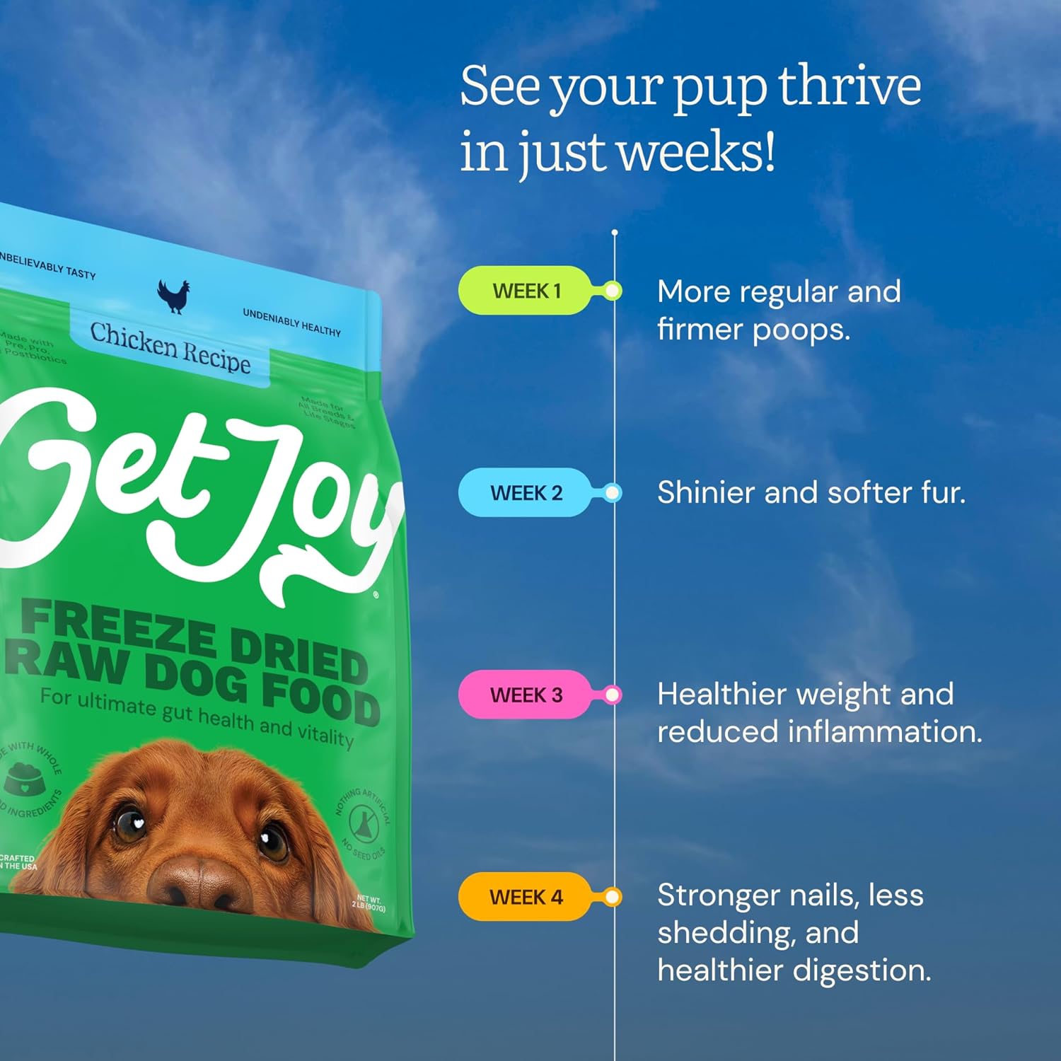 About this item FREEZE DRIED RAW DOG FOOD CHICKEN RECIPE: Grain free raw dog food made with 100% USDA chicken, organ meats, and superfoods for balanced nutrition and freeze dried freshness for big flavor and taste your dog craves. DOG FOOD WITH BELLY BIOTICS: Prebiotics, probiotics, and postbiotics work together to support gut health, digestion, immunity, and overall dog wellness. DIGESTIBLE HIGH PROTEIN DOG FOOD: Freeze dried raw dog food with leading 97% nutrient retention for better nutrient absorption and digestion, supporting muscles and sustained energy. DOG FOOD TOPPER OR COMPLETE MEAL: Use as a freeze dried dog food full meal, topper to boost their bowl or even a treat. Free from grains, fillers, preservatives, or artificial additives. RAW DOG FOOD FOR ALL BREEDS & AGES: Developed by a PhD animal nutritionist and recommended by vets, with the right balance of protein, fat, carbs, and fiber for puppies, adults, and seniors. › See more product details