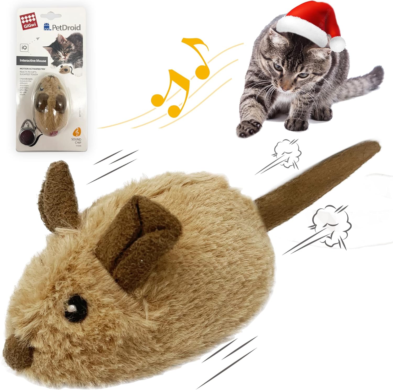 Realistic Mouse Design: The electronic interactive cat toys are supplied with a mouse sound chip and build-in radial sensor. The remote control mouse could make realistic mice sound while moves. The size 3.7x2.2x1.6 inches imitates a real mouse size, suitable for all breeds of kitten or small dogs Mental & Physical Stimulation: All our cats need mental stimulation from play to keep from being bored. The mouse hunt cat toy could fulfill your cat's natural hunting instincts. Physical moving activity from play helps to keep cats physically fit and relieve stress and anxiety Simple Use: Just turn on and put the kitten toys on the flat floor, the moving mouse for cats begins to make a sound while it moves in a unpredictable way and pause after a few seconds. The cat's hard touch would wake it up again. Notice: Please use it on the hard and flat surface, not suitable for use on carpets or rugs Safe & Soft Material: The electronic mouse toy is made from eco-friendly plush and electronic component in high quality. The battery (Type CR2450) is included, could be replaced by yourself. All materials of the mouse toy for cat meet or exceed all applicable safety standards Best Cat Toys Service Guarantee: We guarantee that pet cat toys content will be kept under brand new condition. Please contact us by email directly if you have any problem. We could refund or resend one replacement after the problem is confirmation › See more product details