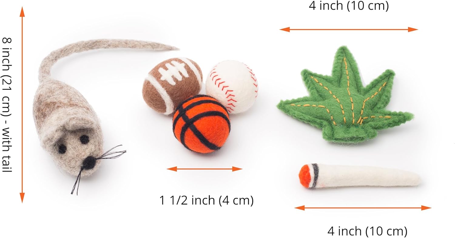 Our adorable catnip stuffed cat toys are sure to become one of your kitten's favorite cat toys. Your kittens will stay preoccupied for hours with our cat entertainment for indoor cats, making sure they get the activity and exercise they need.REMINDERS:✅ These are not edible even if this is an organic kitten supplies✅ Most cats are excited by the smell of catnip, some do not respond to catnip✅ Washing will affect the potency of our catnip mouse & swabs✅ We recommend air drying these kitten teething toys after washing✅ Machine drying will likely alter the shape of these cat and kitten toysGlaciart One stands behind our cat products so if our mouse, balls and joint cat toy for indoor cats do not brighten up your day, you can return 100% risk free. Technical details/Dimensions:✅ 1 pc toy mouse for cats✅ Mouse body = tails is 8 inches✅ 3 pcs cat toy balls✅ Each ball is 4 cm✅ 2 pcs joint set