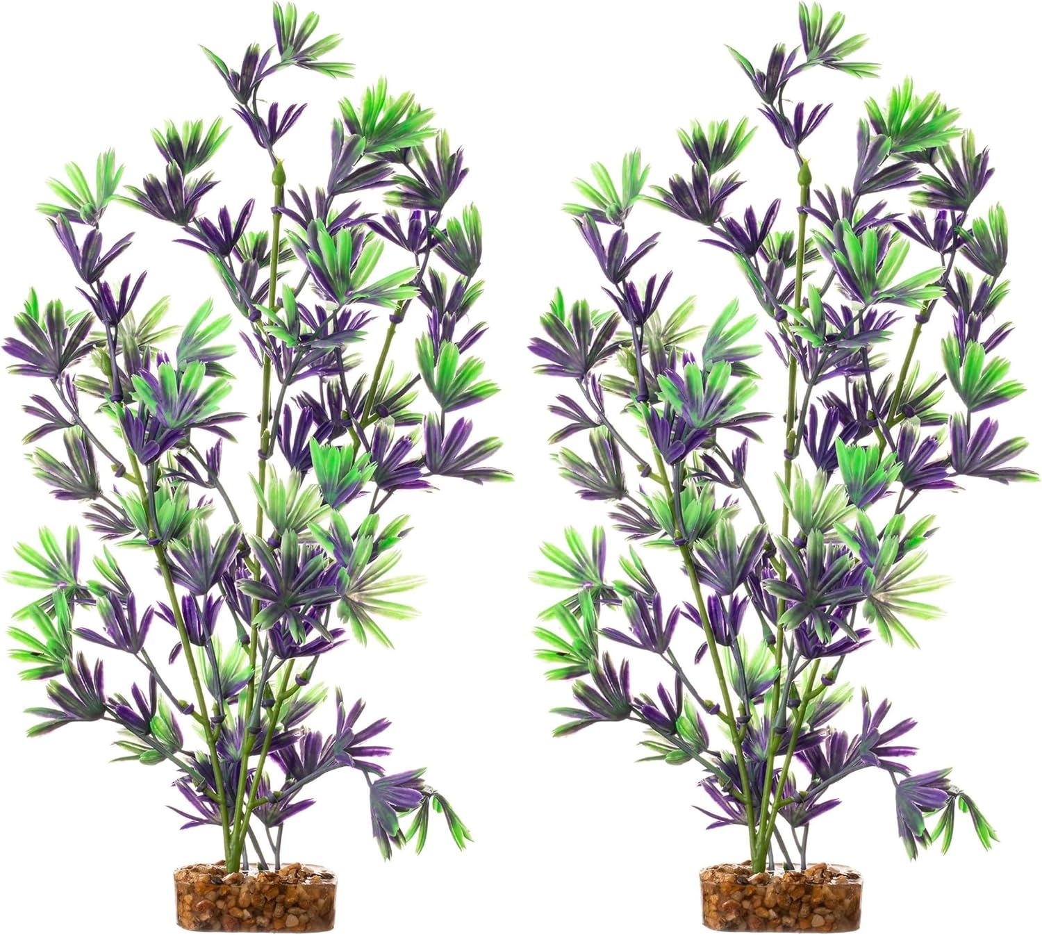 About this item The information below is per-pack only COLOR-CHANGING PLANT: GloFish Plants fluoresce under blue LED lights. BRILLIANT AQUARIUM ACCENT: Use with GloFish blue LED lighting (sold separately) for the full fluorescent effect. CONTAINS: One large purple and green plastic plant with a weighted base. EASY TO CUSTOMIZE: GloFish Plants come in many different colors, sizes and shapes, allowing for easy customization. EXPERIENCE THE GLO: GloFish fluorescent fish and accessories create a complete underwater fluorescent experience. › See more product details
