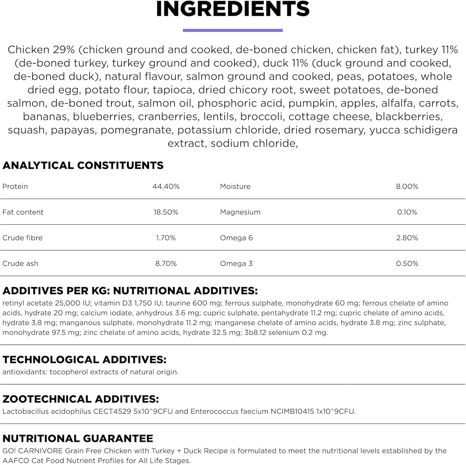 - Model Name: GO! SOLUTIONS Carnivore Grain Free Chicken, Turkey + Duck (3 lb.)