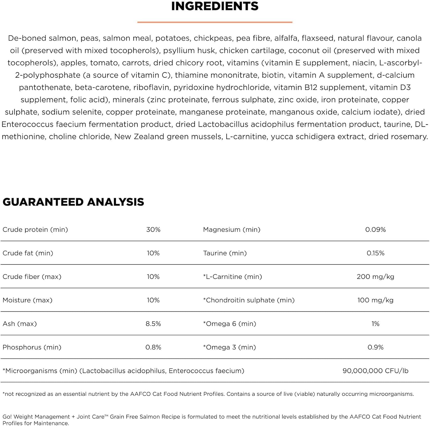 Healthy weight and mobile joints are key for nimble leaps and soft landings, but do you dread putting your picky cat on a diet? At Go! Solutions, we’re dedicated to providing top-notch nutrition to support weight management (and other needs). We've thoughtfully created this cat kibble for adults and seniors with premium-quality salmon as the first ingredient and packed it with science-backed, functional ingredients to support weight control and joint health. Each Go! Solutions recipe is developed by a team of qualified and dedicated pet nutritionists to address your cat's specific dietary needs. Experience the joy of this fiber-rich recipe which keeps your kitty feeling full, so they won't even notice you've put them on a 'diet'.