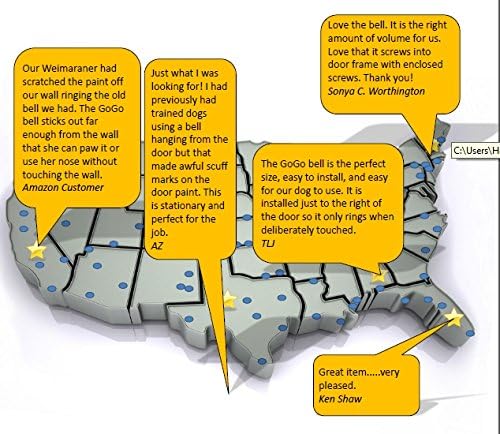 Your search for the best dog doorbell is finally over. When you purchase your our bell today here's what you should do... When that cute little box from amazon arrives, rip it open. Take out the bell and remove it from it's packaging. Grasp it firmly in one hand hand and give the bell a tiny shake. Notice the pleasant chime it makes. The clear tone can easily be heard from other rooms. The included instructions will guide you step-by-step on how to train your dog to use the bell. Your bell includes two screws which makes it easy to put the bell at the perfect height for your dog. What separates our bell from the competition? It starts with safety and quality. Jingle bells were never designed to be used by pets. They contain several slots which your dog's claws can become stuck in which is dangerous. Our solid metal bell contains no slots. Unlike other bells that are made with thin ribbon that can easily fray our bell is made out of solid metal. Bells that hang off door knobs may not hang low enough for puppies or small dogs to reach. It's this attention to detail and design that separates us from the rest. It's because of this we're able to make a guarantee unlike any other you've seen for dog door bells. Try our bell and if it ever breaks or your dog simply is in that 5% that can't be trained to use it return it for a full refund of the purchase price. So order now and when you do consider getting two... One for inside and one for outside.