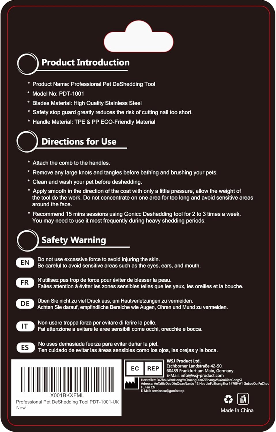 - Directions: Attach the comb to the handles. Remove any large knots and tangles before bathing and brushing your pets. Clean and wash your pet before deshedding. Apply smoothly in the direction of the coat with only a little pressure, allow the weight of the tool do the work. Do not concentrate on one area for too long and avoid sensitive areas around the face. Recommend 15 mins sessions using Gonicc Deshedding tool for 2 to 3 times a week. You may need to use it most frequently during heavy shedding periods.