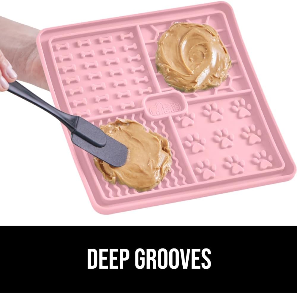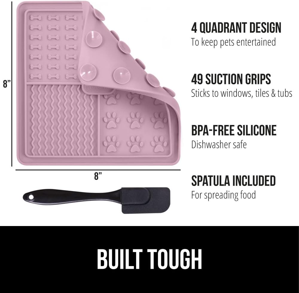 • USE WITH PEANUT BUTTER, YOGURT, FOOD AND MORE perfect for peanut butter, yogurt, wet food, kibble, and more; food grasps firmly to the mat’s raised textures and inside the deep grooves; use included spatula to spread your pet’s favorite soft treats onto the mat