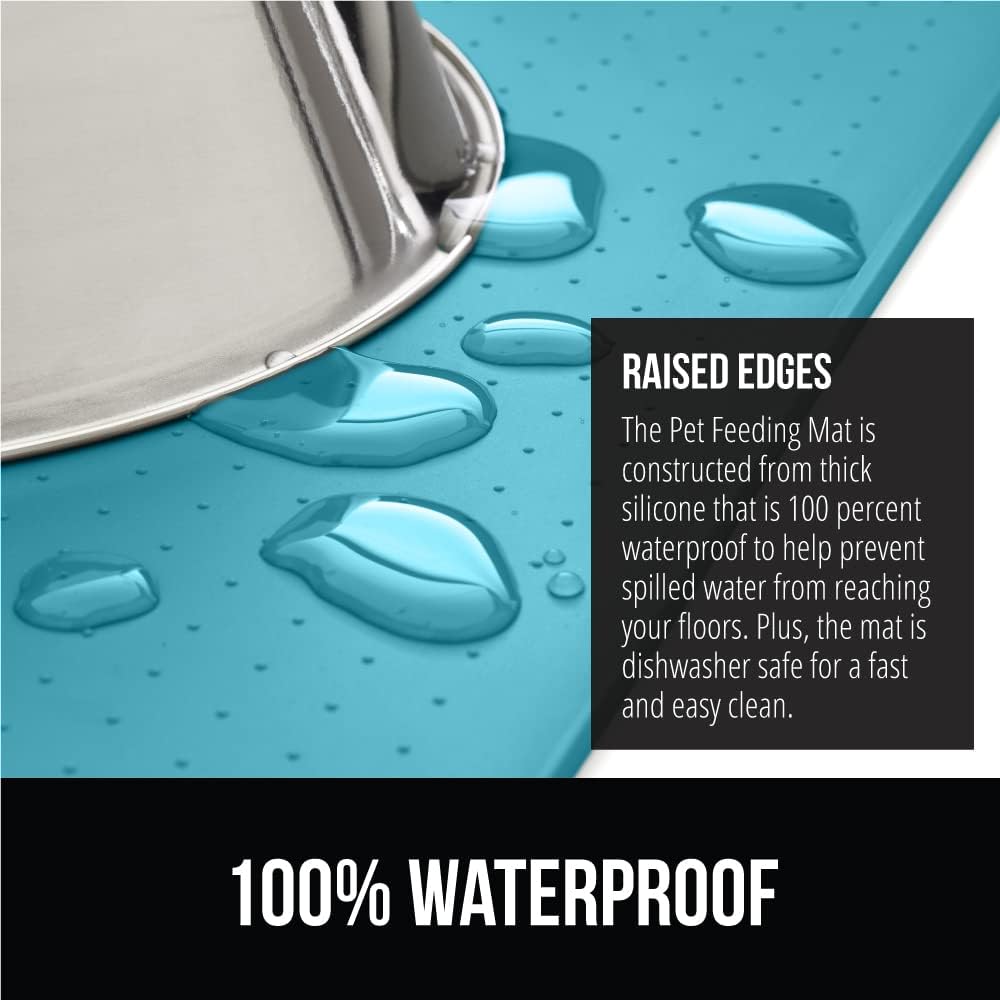 • 100 PERCENT WATERPROOF FOR ULTIMATE FLOOR PROTECTION some of the cutest pets can be the messiest eaters and drinkers; mat is constructed from 100% waterproof silicone that is dishwasher safe for an easy clean; mat features a 1/8-inch-thick raised edge around its border that helps to contain liquid runoff to the top of the mat; mat acts as a barrier to help prevent spills from reaching your floors and causing potential damage