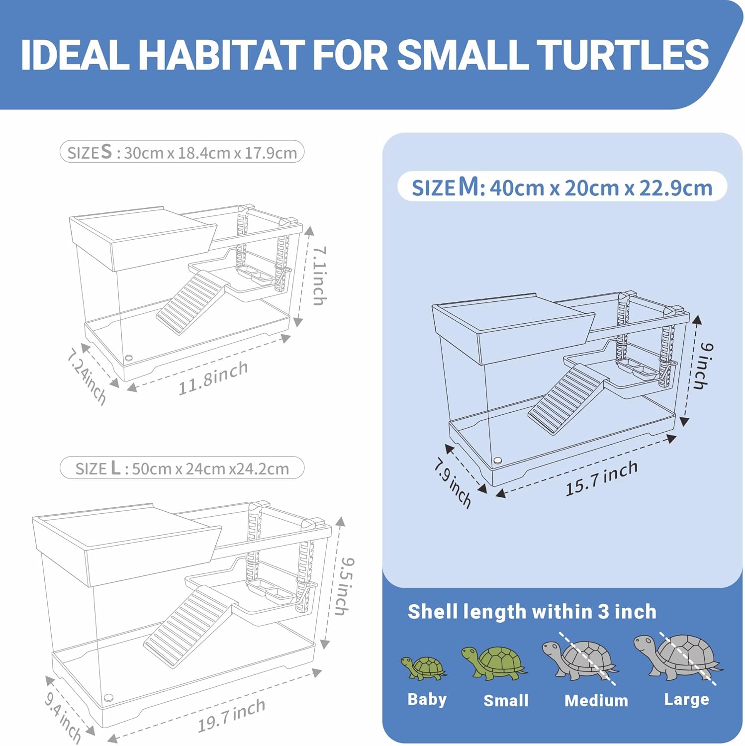 About this item GOZILLA turtle tank starter kit one set including:1*tank,1*lid,1*drainage rubber,1*sponge brush, 1*decorative plant,1*hanging platform with parts,1*bag of natural rocks, 1*bag of colored beads,1*lamp with 2*bulbs, 1*filter with 2*filter plates, and 1*manual,1*dip net. Save your time to purchase all these accessories separately. Our aquarium tank is upgraded for use with both reptiles and small fish, and are capable of holding deep water. They are suitable for all small aquatic and reptile animals.You just need to add decorations to make a complete tank kit. Compare to regular basking platform, this hanging platform is designed for height adjustable. Expanding aquatic environment which provide basking, climbing and feeding. Your reptilian friends will rest and active throughout the day without feeling bored. 3.5W water filter keeps the water clean. Please hang the filter with a hook and back suctions to stabilize it. Filter motor maintenance: please replace the filter cartridge and rinse motor regularly to remove debris every 1-2 weeks. Turtles need 1-2 hours of sunlight per day for metabolism, mood regulation, reproduction, etc. In addition to controlling the brightness, basking lamp can also be set for 2, 4 or 8 hour with auto shut-off function. Making cozy sunbath for reptile. › See more product details