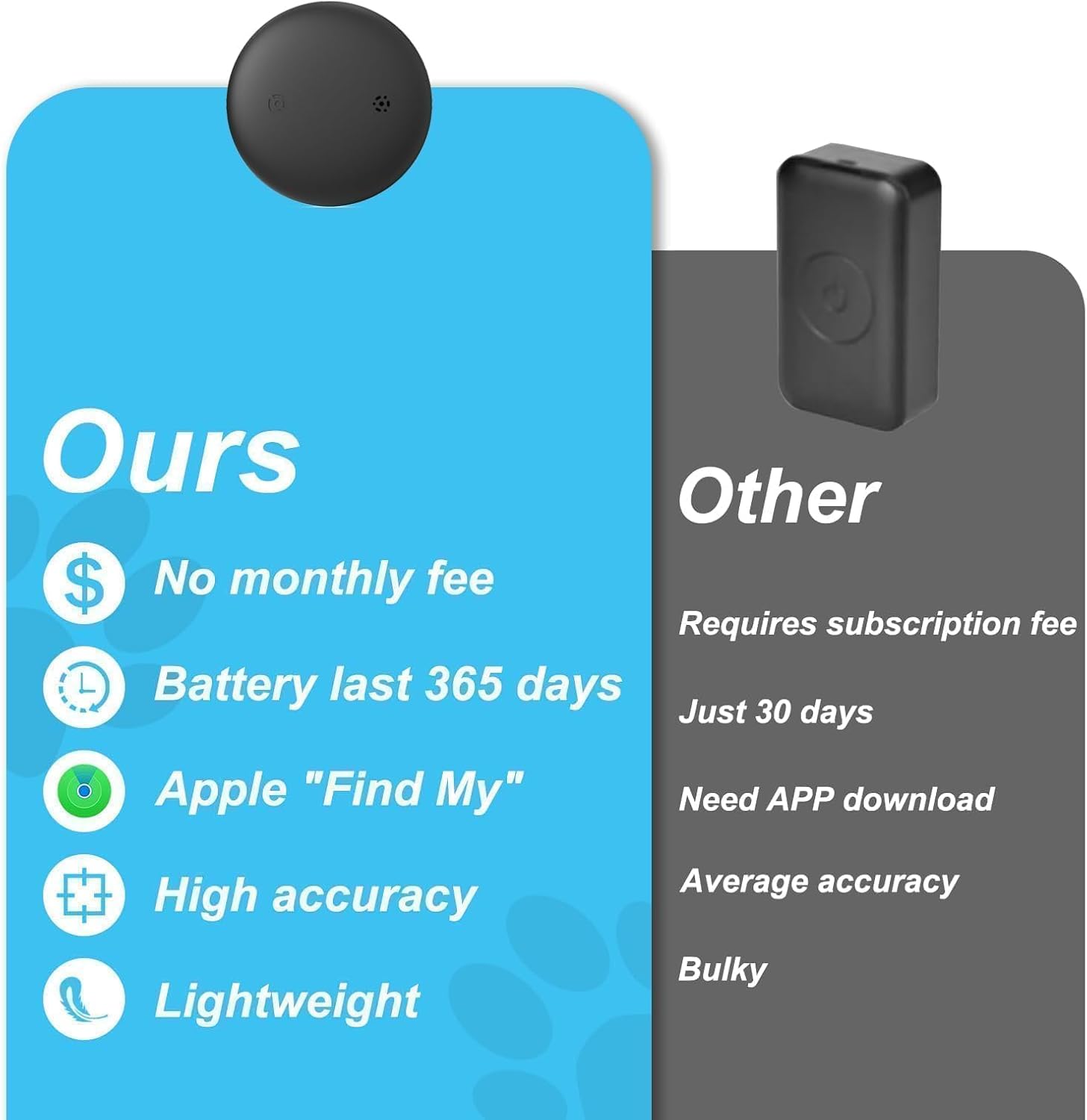About this item 【No Monthly Fee & Free Application】- The GPS tracker for cats is free of any service fee or monthly fee. If you are an iOS user, our cat GPS tracker collar is free to use the ‘Find My’ and ‘Maps’ app. 【Works with Apple Find My】- The cat tracker only works for Apple iOS, and doesn't work for Android. A simple one-tap setup instantly connects the cat tracker finder to the Find My app on your Apple device to follow your furry friend's every step in real-time tracking on your phone. 【Waterproof, Long Battery Life】- The cat gps tracker is IP67 waterproof. Don't worry about the rain, mist, snow, or water. This prolongs the life of the device. Built-in CR2032 battery, its long standby time is over 10 months and the battery can be replaced at home. 【360° Reflection】- This GPS cat tracker collar is sewn with high-brightness reflective webbing. Easier to find your cat under darkness and low light conditions. And can make the night of the vehicle or cyclist's attention, so keep safe your cat's night activities! 【Adjustable Cat Collars Size】- The cat tracking collar makes it easy to get a perfect fit with the cat's neck by measuring and cutting to the required size. Suitable for small, medium, and large cats. The collar GPS tracker for cats is made of high-quality nylon, small and durable. › See more product details