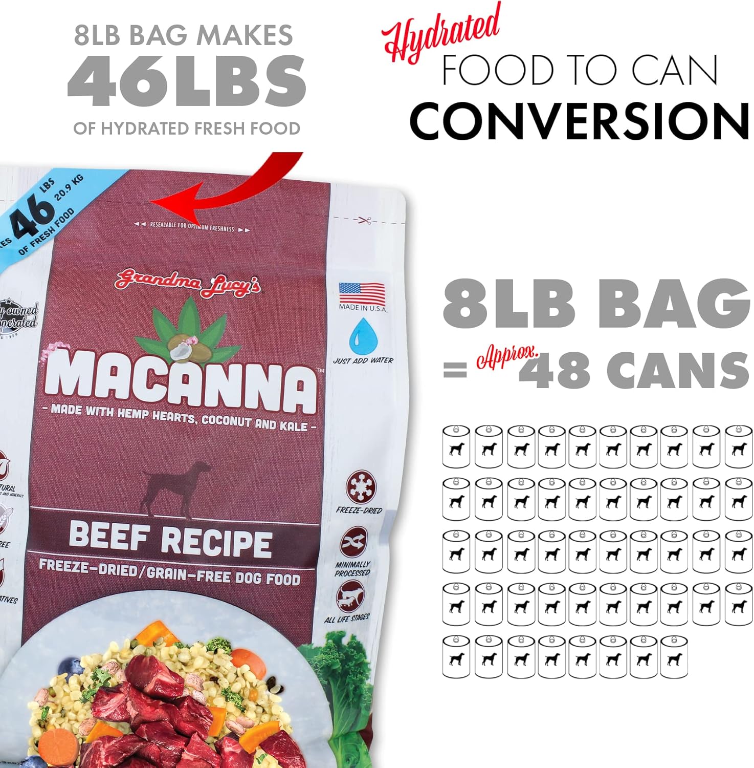 - Model Name: Grandma Lucy’s® Macanna™ Freeze Dried Grain Free Beef Recipe Dog Food 1 Lbs
