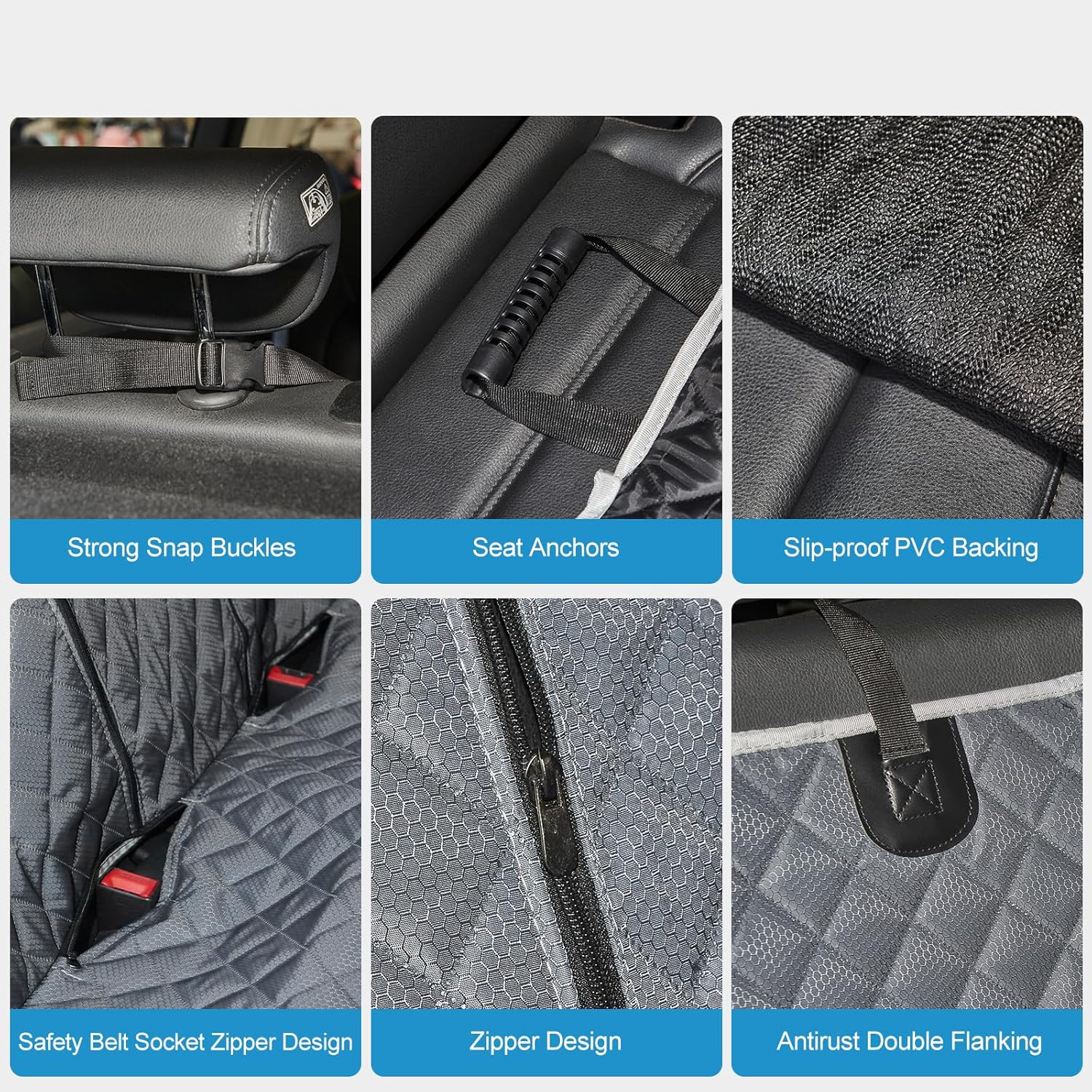 About this item đ¶ă1. Enhanced Safetyă: Ensure a secure and worry-free driving experience with our reliable and durable dog car seat cover. Your furry friend will stay safely in place during the ride, allowing you to focus on the road and enjoy a pleasant journey together. đ¶ă2. Comprehensive Protectionă: Safeguard your car against sand, dirt, fur, hair, footprints, wet sweat, and even the occasional spills from kids. This pet back seat cover not only preserves your vehicle's cleanliness but also protects your cherished belongings. đ¶ă3. Waterproof and Scratch-Resistantă: Bid farewell to concerns about fur, saliva, vomit, or any other discomforting messes. Our sturdy four-layered Oxford material is both scratch-proof and waterproof, ensuring long-lasting durability. Just remember to promptly wipe away any accumulated water with a dry towel. đ¶ă4. Versatile and Practicală: This bench back seat cover serves multiple functions, acting as a protector for kids and pets alike. Whether it's safeguarding your sofa or preventing doggy-induced chaos in your car, it offers a reliable and convenient solution. đ¶ă5. Easy Installation, Storage, and Universal Fită: Install this dog car seat cover within minutes, thanks to its user-friendly design. The long straps easily wrap around the seat and reach the headrest, providing a secure fit. It adapts to most rear seats, accommodating not only small and medium-sized dogs but also large breeds. Perfect for travel and fits well in various vehicles. Note: Each product includes a seat belt. In case of any missing accessories, please contact us promptly. âș See more product details