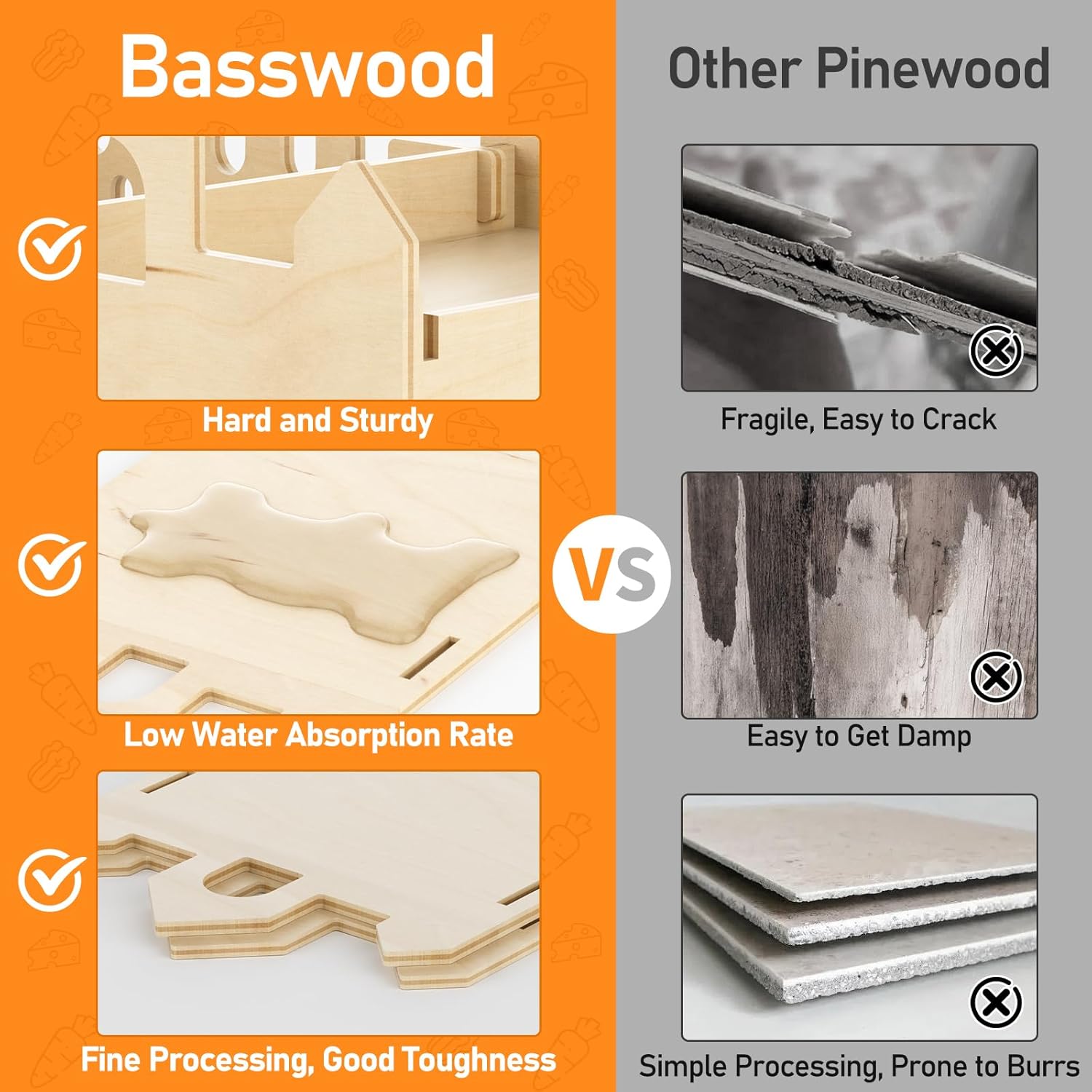 About this item Ultimate Guinea Pig Paradise: Spacious multi-level guinea pig hideout provides essential hiding spots, climbing fun, and a secure lookout platform, satisfying your pet's natural instincts to explore and feel safe. Your little pet can sleep peacefully or store their precious food at hiding points. Through the design of multiple exits, they can run freely in the hamster hide while enjoying high air circulation. And experience climbing fun and a secure lookout platform by climbing up the ladder. High Quality for Safety: Crafted from premium, untreated, solid wood. Non-toxic and chemical-free, the guinea pig hut itself only emits a fresh natural wood scent, the surface can be touched by both humans and pets at will, ensuring a healthy and comfortable environment for your sensitive small pets. Easy Assembly & Cleaning: All boards can be inserted through mortise and tenon or plug-in structure, without the need for extra nails or glue. The instruction manual reveals the naming and installation sequence of each component. The video on the link will also introduce how to install hamster house. Features detachable components, easily separate ramp for quick wipe-downs, no more struggling with nailed-fixing structures. Practical Design: There is velvet cloth on the ramp to increase friction and make it easier for guinea pigs to climb up the stairs. Keeping food or toys on the second level platform can attract hamsters to climb to the second level, exercise their flexibility, and keep guinea pigs healthy. Versatile Habitat: Perfect as a cozy hideaway, stimulating playground, or a relaxing elevated lounge. Our guinea pig hides complements cage or playpen setup, providing enrichment for happier, healthier pets. Considering the doorway size, it's not suitable for adult rabbits, but it can be a sweet house for small pets such as guinea pigs, hamsters, gerbils, hedgehogs, and dawrf bunnies. Its castle like appearance is definitely a beautiful decoration scenery in your home. Pay Attention to the Size: Please measure the size of your playpen, cage, enclosure or fence before purchasing. Then please read the size description of the hamster hideouts in the link. If the hideout itself exceeds your capacity, it will not fit. › See more product details