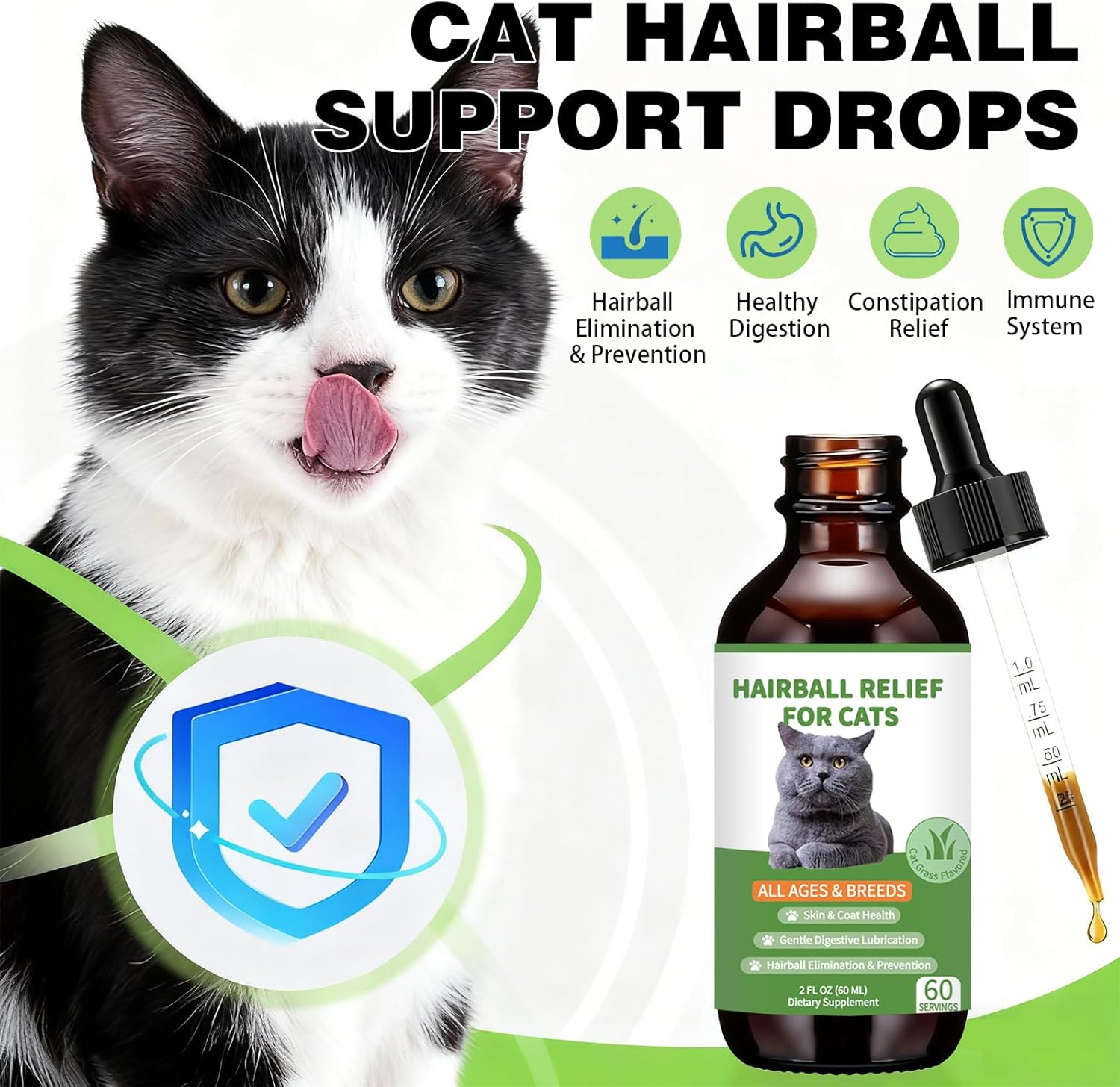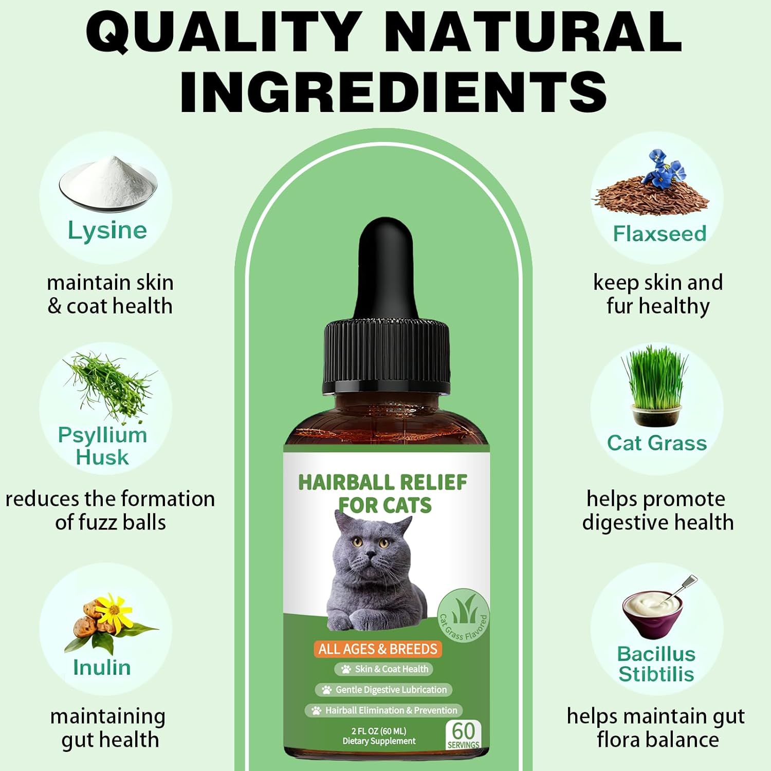 🐈Is Your Cat Getting Hairballs & Throwing Up? 👉Choose Our Cat Hairball Remedy Drops to effectively manage and prevent hairballs, reduce vomiting and constipation, and improve nutrient absorption for better digestive health. 🎯Product Benefits: ✅Safe & Gentle Herbal Formula Made with cat-friendly ingredients, our hairball relief solution is safe for daily use and gentle on your cat's sensitive stomach. ✅Beyond Hairball Relief Our drops also contain essential nutrients that support your cat's coat and skin health. Regular use promotes a shiny, healthy coat and reduces shedding, making grooming time easier for both you and your pet. ✅Easy to Use The convenient dropper bottle design makes it simple to give your cat the recommended dosage. Simply add a few drops to your cat's food or water, or directly into their mouth, without the hassle of pills or messy powders. 🐱How many drops should I give to my cat? 🐱For cats weighing up to 10 pounds (including 10 pounds), administer 1 dropper (1 ml). For cats over 10 pounds, the recommended dosage is 2 droppers (2 ml). Depending on your cat's condition, use the suggested serving once or twice daily. 🐱Cats lick their fur daily, causing ingested hair to build up in their intestines, reducing excretion through vomiting and excrement. Experience relief with this gentle furball treatment for cats, acting as a superior hair ball remedy cat for all breeds. 💖Striving for the Happiness and Well-being of Cats Only