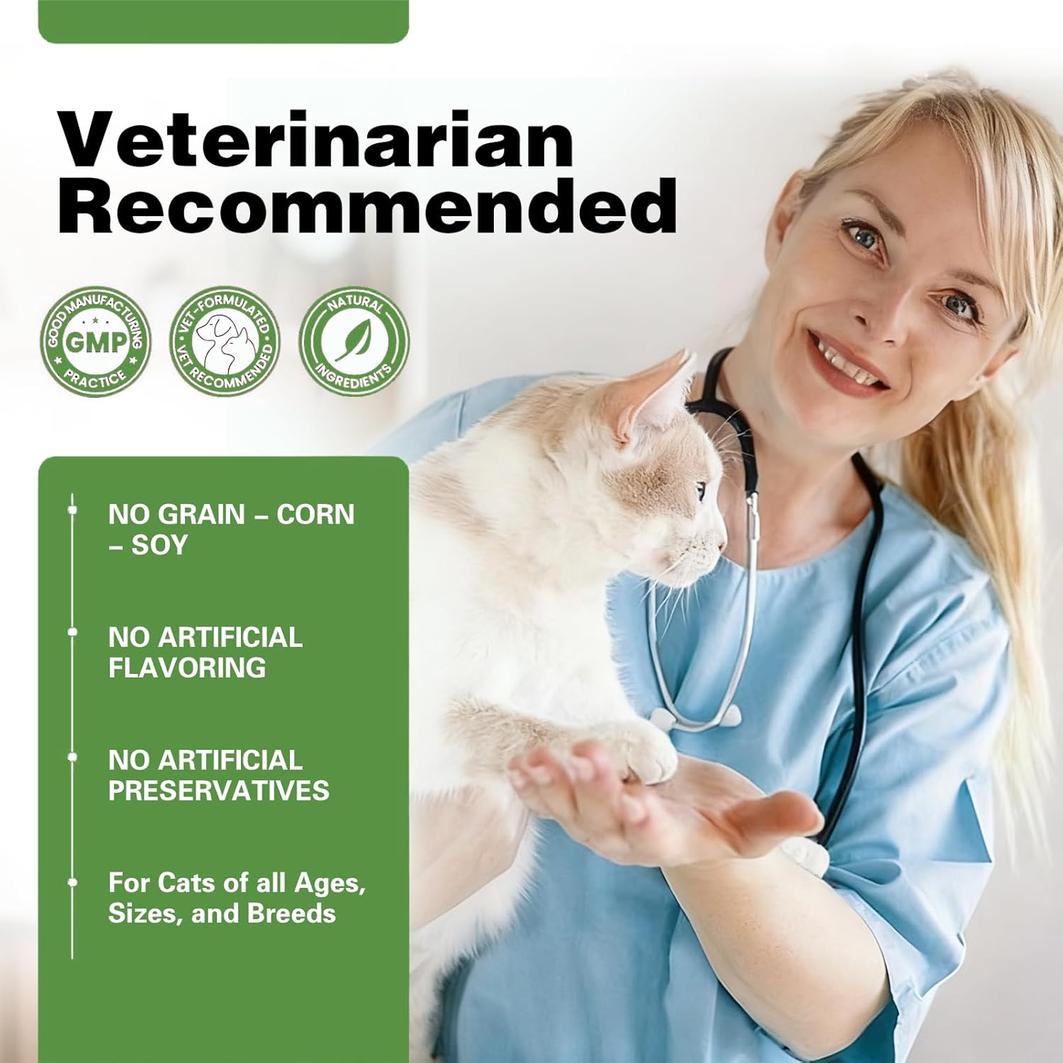 - Included Components: Psyllium Husk (100 mg), Safflower Seeds (50 mg), Flaxseed (50 mg), Cat Grass (0.5 mg), Inulin (100 mg), Bacillus Subtilis (100 mg), Vitamin A (2000 IU), Vitamin D3 (200 IU), Lysine (500 mg)