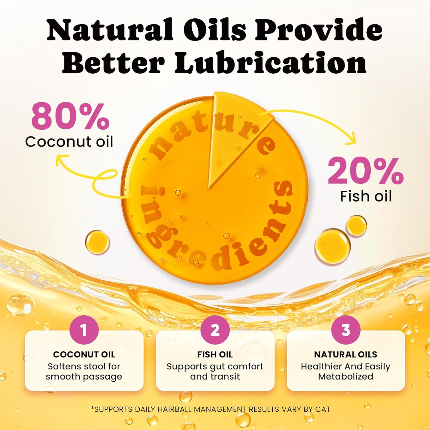 【Smoother Lubrication】Natural fish oil and coconut oil gently lubricate the gut, while lecithin helps hair mix into solid stool so it passes out more easily. This clean, food-based cat hairball remedy is a smarter alternative to messy hairball paste for cats or hairball gel for cats, and the center-filled soft chews function like tasty hairball treats for cats within a daily hairball treatment for cats routine. 【 Reduce Hair Buildup in the Gut】Apple fiber, psyllium husk, and pumpkin powder provide a balanced fiber blend that forms solid stool to trap swallowed hair and move it out. Digestive enzymes (papain, bromelain, cellulase) help break down food so transit stays regular—supporting everyday hairball control and gentle hairball relief for cats beyond brushing or hairball control cat food alone. 【Less Shedding, Less Hair Swallowed】Hydrolyzed collagen, biotin, zinc, and vitamin E support the skin barrier and hair follicles to cut down loose, break-prone hair before it’s swallowed. With less loose hair, you’ll see fewer cat hairball episodes and overall less hairball mess at home, while keeping coats softer and shinier. 【Probiotics + Prebiotics for Sensitive Guts】Probiotics paired with prebiotics help maintain a balanced microbiome and support a healthy gut lining. By feeding beneficial bacteria, they support a calmer, more comfortable gut even when cats are swallowing hair—rounding out a gentle cat hairball treatment approach alongside natural oils and a fiber blend. 【Up to 4-Month Supply】A 450-chew jar offers extended use for single-cat households (up to about 4 months depending on size and daily directions) and delivers stronger value per day than many 180-count options. This long-lasting supply keeps your hairball cat treats routine consistent; the chicken flavor makes daily giving simple, and it’s easy to stick with your preferred hairball treats plan without frequent reorders. 【Buy with Confidence】 Cats may be cautious with new treats.Offer several times to allow them to warm up at their own pace. If your cat still refuses to eat, or if you’re not fully satisfied with the results, we’ve got you covered. 👉 Any product issues, please contact us via Amazon Message Center — we’ll provide a satisfactory solution. Enjoy a FULL-REFUND, NO QUESTIONS ASKED! › See more product details