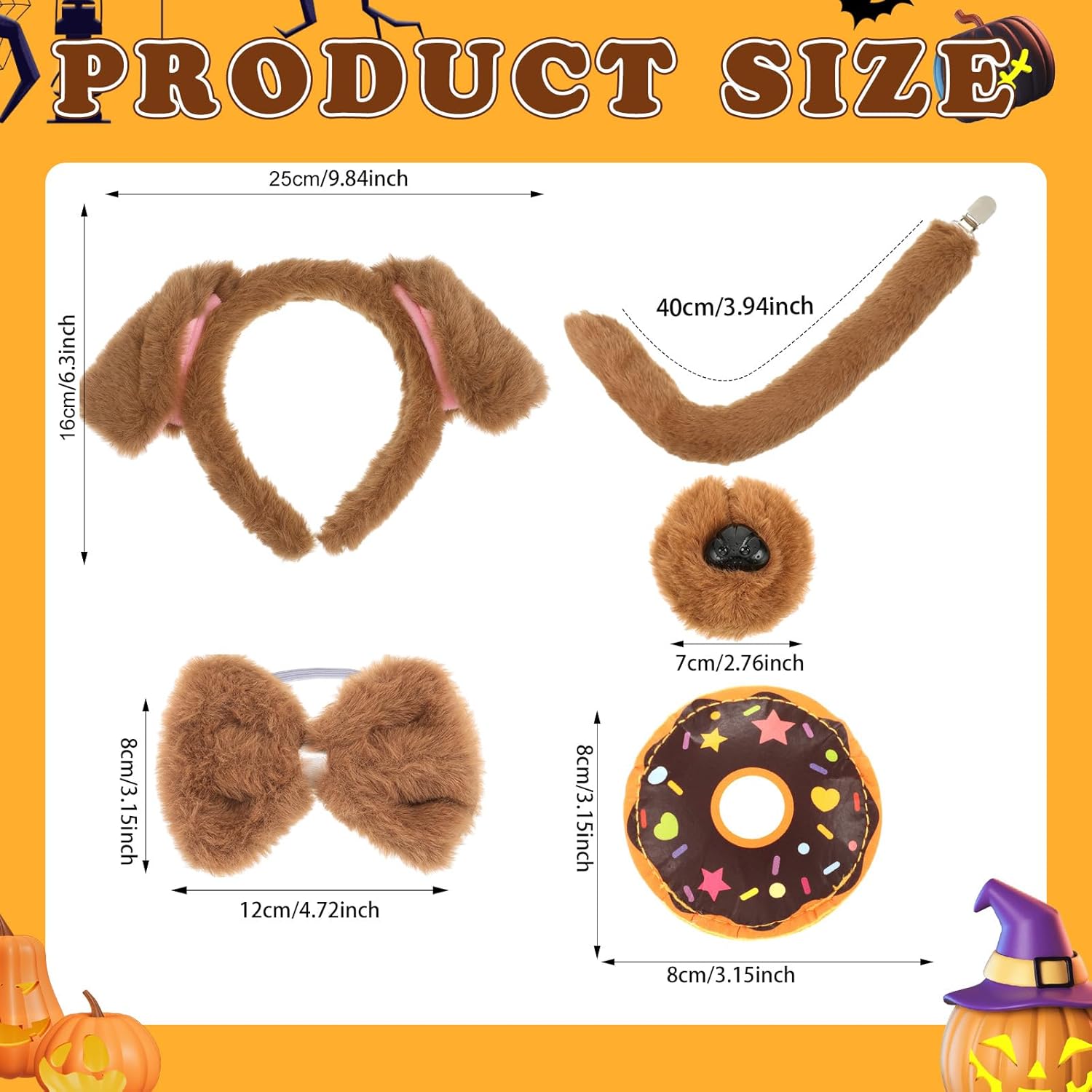 • Complete Costume Set: transform into an enchanting creature with our dog costume set, which includes a delightful dog ears headband, a whimsical tail, nose, and two adorable donut brooches; Nicely curated for anyone looking to dazzle at their next event
