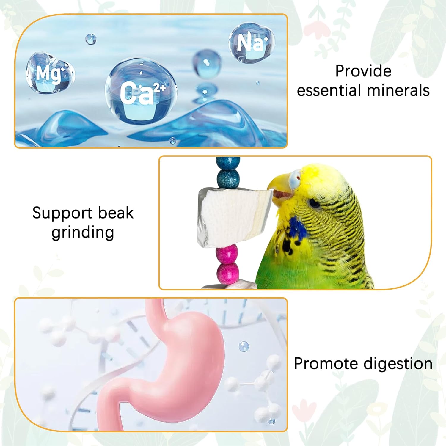 - Included Components: 2pcs bird cuttlebone chew toy