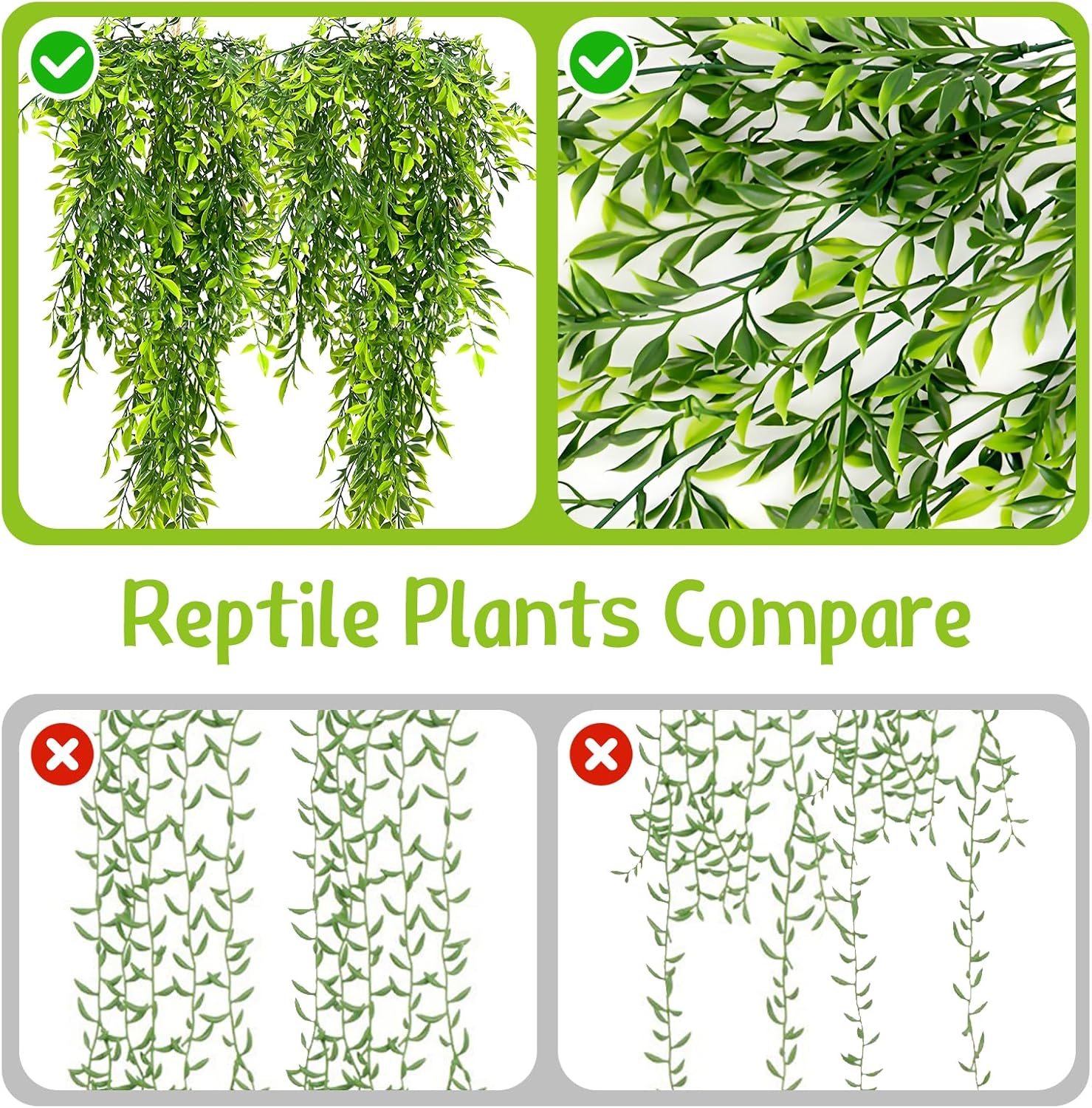 • Habitat Plant Decoration Reptiles and amphibians are prone to stress, which affects their mood. Plant leaf decoration helps to reproduce the appearance of its natural habitat, making your pet feel at home in the wild. This also makes your pet feel happier