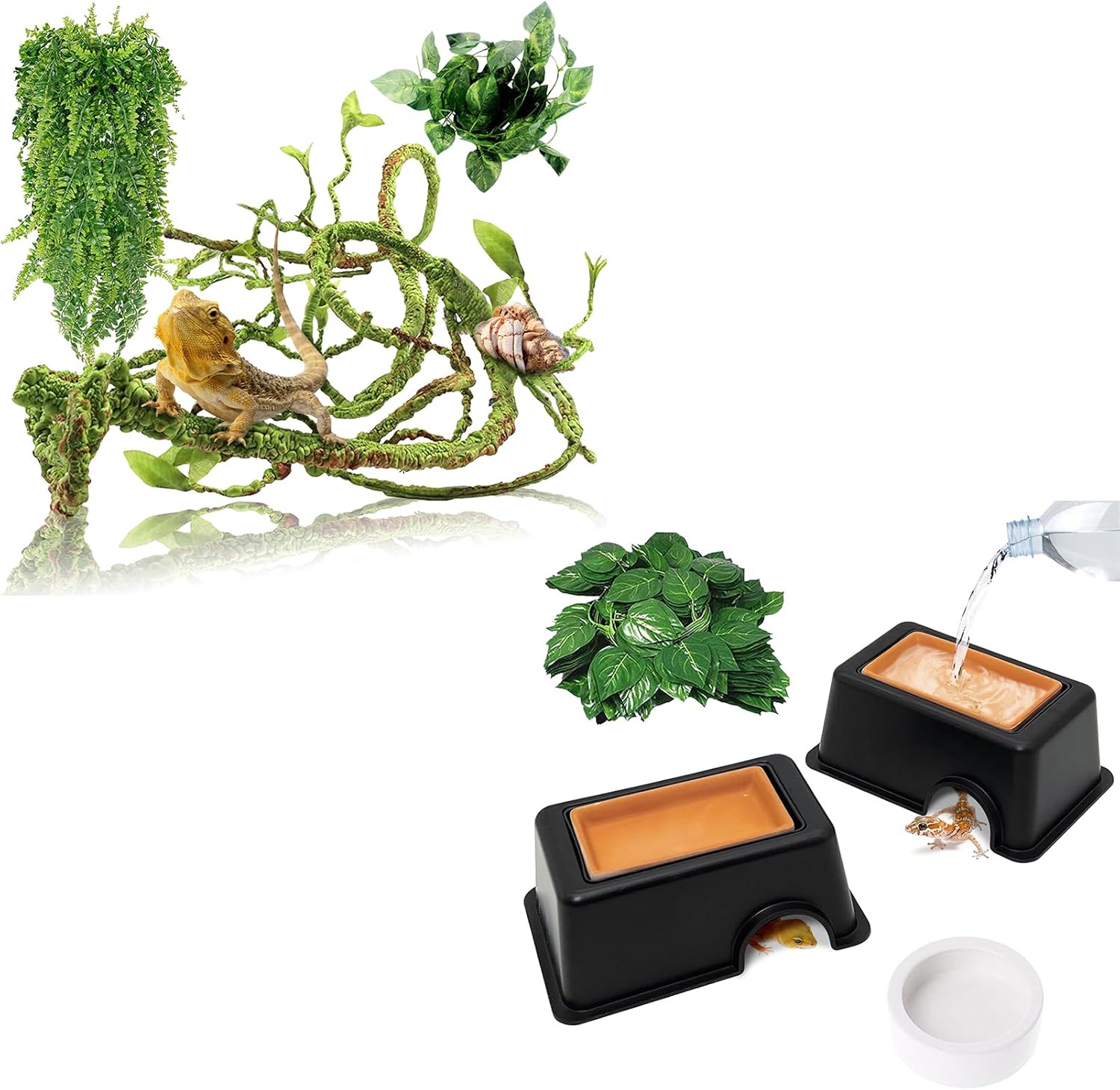 • Quality Material The jungle vines for reptiles are made of iron wire inside and soft PU material outside can be bent at will.They bend to fit your pet's enclosure while offering more support than a conventional vine which can be recessed into the shape you need.The reptile vines and leaves can provide proper exercise for many reptile species.The artificial fake plants for reptiles are made of plastic is better to protect your pet safe