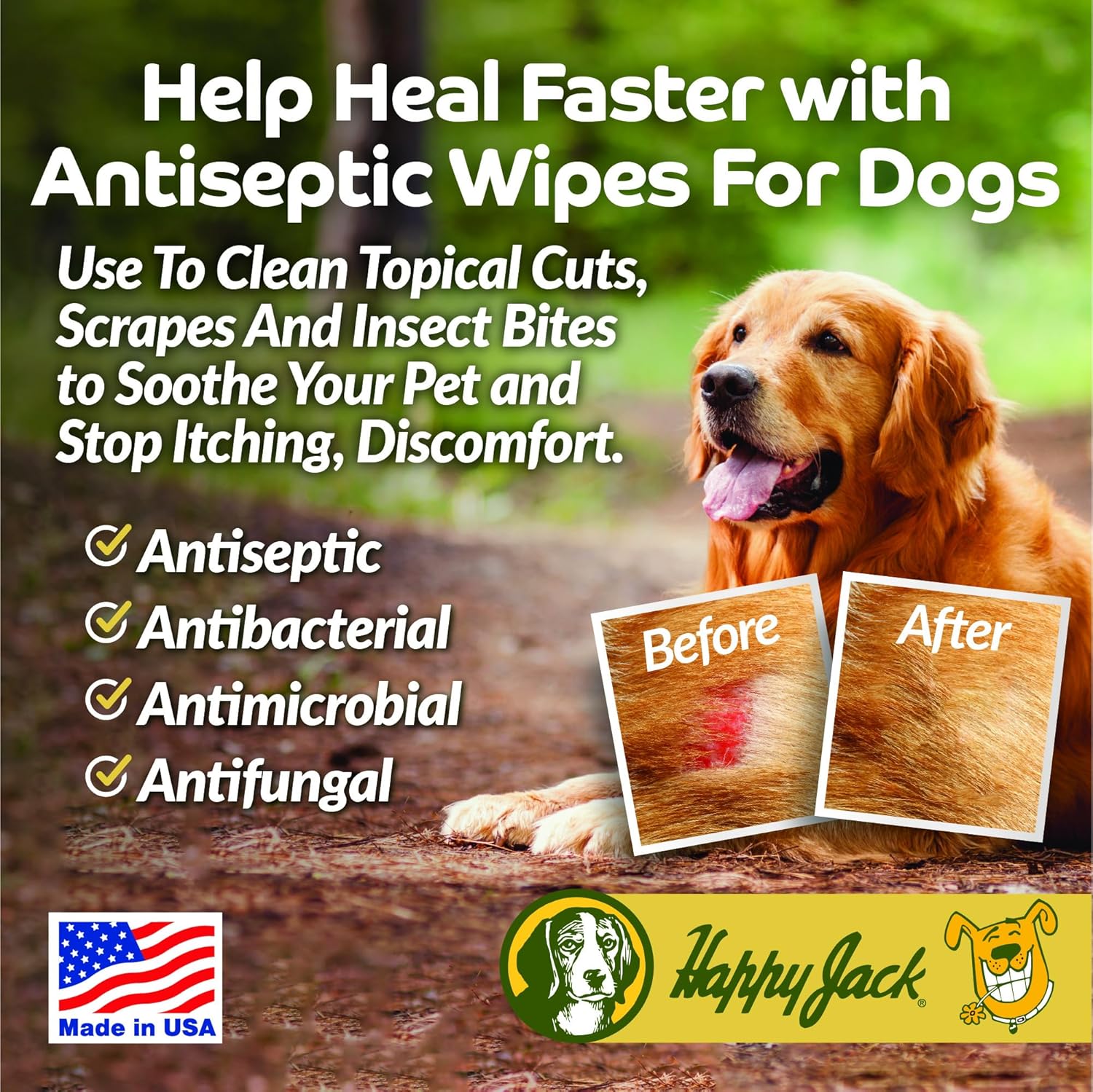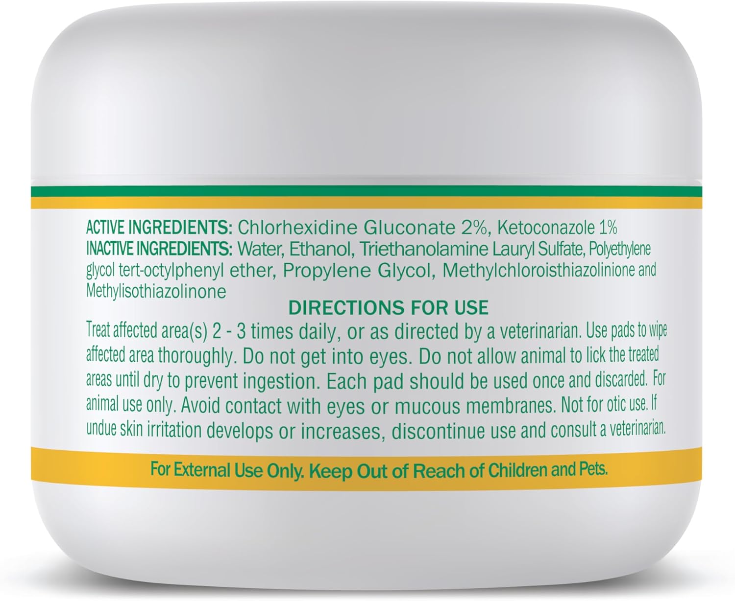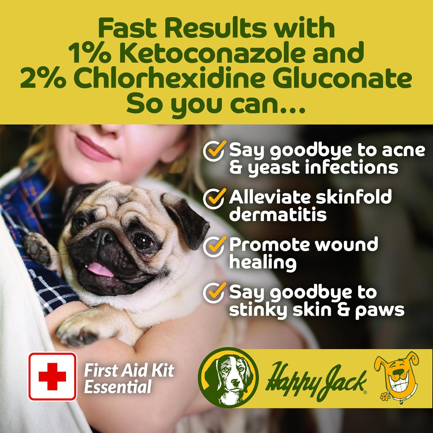 SOOTHING DOG WIPES FOR DOGS, CATS, HORSES. Premoistened with 2% Chlorhexidine solution for dogs and 1% Ketoconazole for dogs to fight skin conditions including yeast. Used as pet wipes for dogs, dog face wipes, dog cleaning wipes, and wrinkle wipes. GREAT FOR SKIN INFECTIONS, RINGWORM, DERMATITIS. Chlorhexidine wipes for dogs use as dog yeast infection treatment paws, acne, scaly skin prior to dog dermatitis treatment, and greasiness. COMFORTING CAT ITCHY SKIN TREATMENT. Cat acne wipes for cleaning fur and make great cat acne chin treatment. If fluffy has allergies, use as a cat paw cleaner, ear wipes for cats, cat face wipes, and cat grooming wipes. SUITABLES FOR ALL DOGS, INCLUDING BULLDOGS, FRENCHIES, SHARPEI, BASSET. Bulldog wrinkle wipes for English or French bulldogs. Frenchie ear wipes are dog cleaning wipes that are dog wipes for yeast as well as dog tear stain wipes. VETERINARIAN FORMULATED, MADE IN USA in federally regulated manufacturing facilities to ensure that you are giving your best friend the best care available. Happy Jack -- alleviating your pets’ problems since 1946. › See more product details