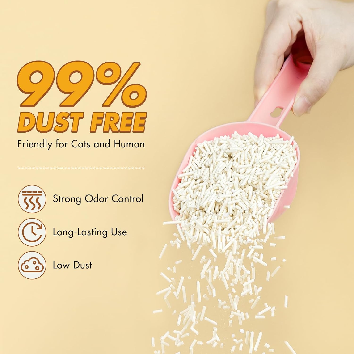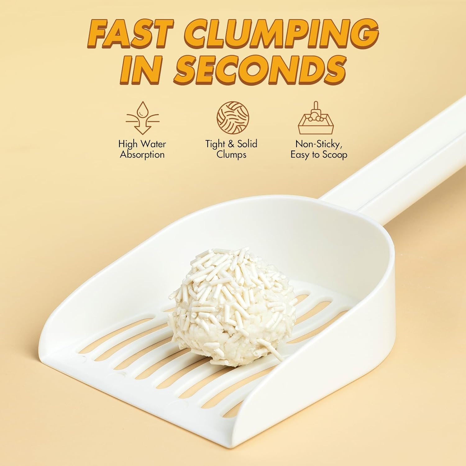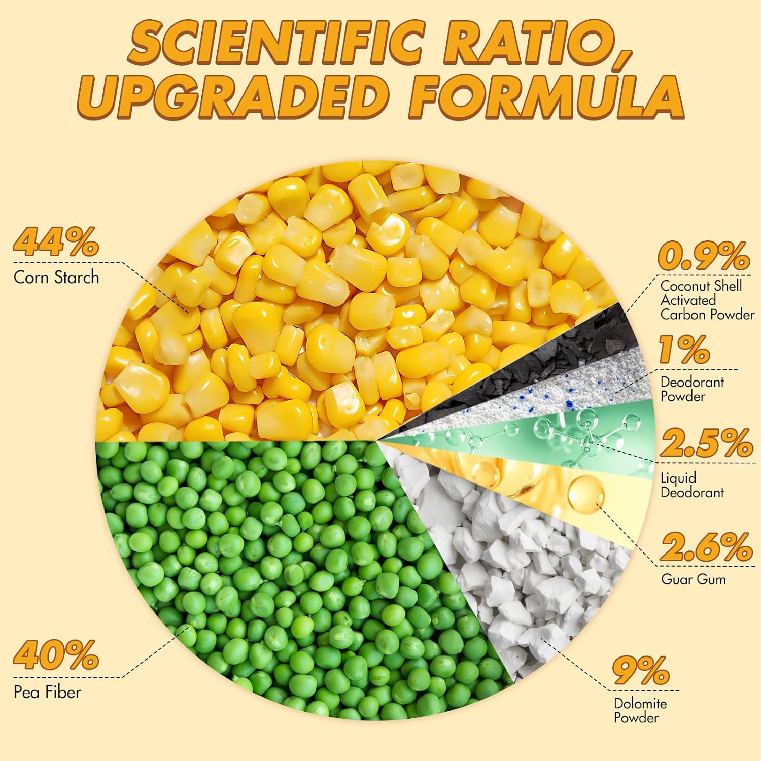 About this item 100% Natural Flushable Cat Litter:Made from pea dregs and corn starch, enhanced with coconut shell activated carbon. Provides quick clumping, strong odor control, less chance of sticking to a cat litter box, and safe eco-friendly use. Quick Clumping Tofu Cat Litter:Fast cat litter clumping in 3 seconds. This tofu litter forms tight, solid clumps, resists sticking, scoops easily, and is flushable for convenient disposal. (Tip: Flush small amounts at a time.) Low Dust & No Tracking Cat Litter:Our dust-free cat litter (99% dust removed) keeps air clean and reduces respiratory irritation. With a smooth texture, this non-tracking cat litter won’t stick to paws, minimizing mess and keeping floors fresh. Odor Control & Unscented:Plant-based formula with coconut shell carbon for strong odor absorption. Unscented, safe for sensitive cats, keeps your home fresh and clean. Vacuum Packed Litter:The litter is vacuum-sealed for freshness and to prevent pellet breakage during transport. Our natural tofu cat litter is fully degradable, eco-friendly, and can be safely composted or added to your garden. › See more product details