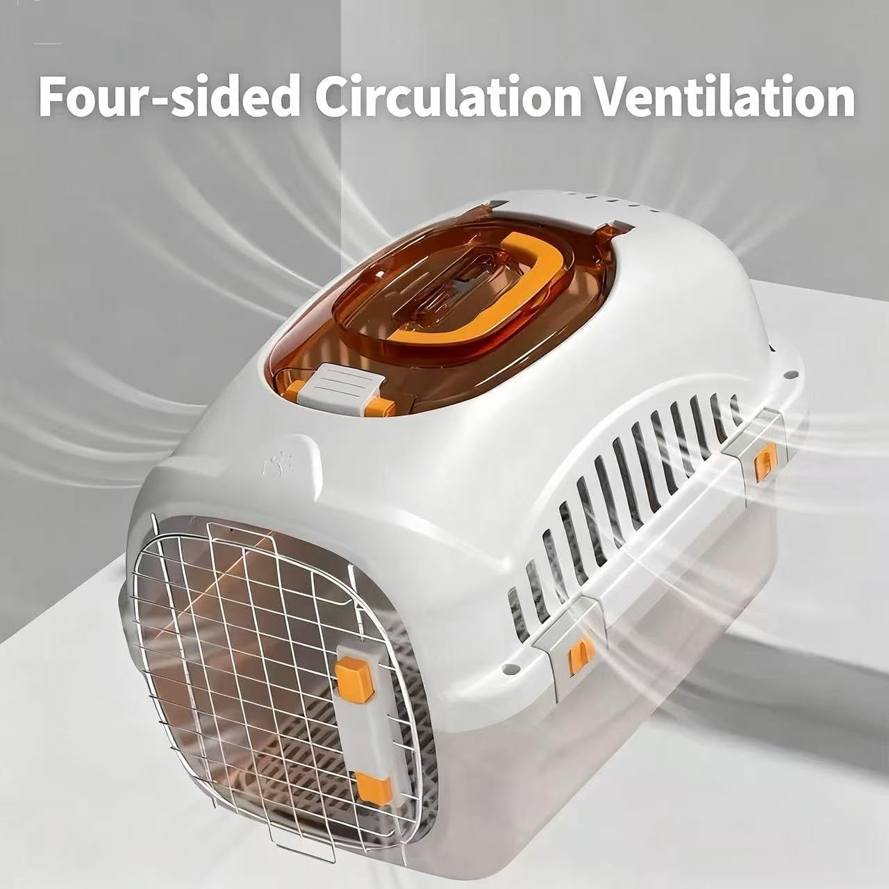 Key Features Hard Shell Protection: Sturdy PP/ABS body + steel front door. Dual Access: Cat carrier hard top load + front door for quick vet checks. 360° Ventilation: Slots on all sides for airflow and visibility. Secure Locks: 4 side latches, screw reinforcement, locking top latch. Easy Clean: Smooth interior; removable grate + 10 pads keep paws dry. Travel Ready: Seat-belt path; What’s in the Box: 1 × hard cat carrier , 10 × pee pads+1*cat teaser wand