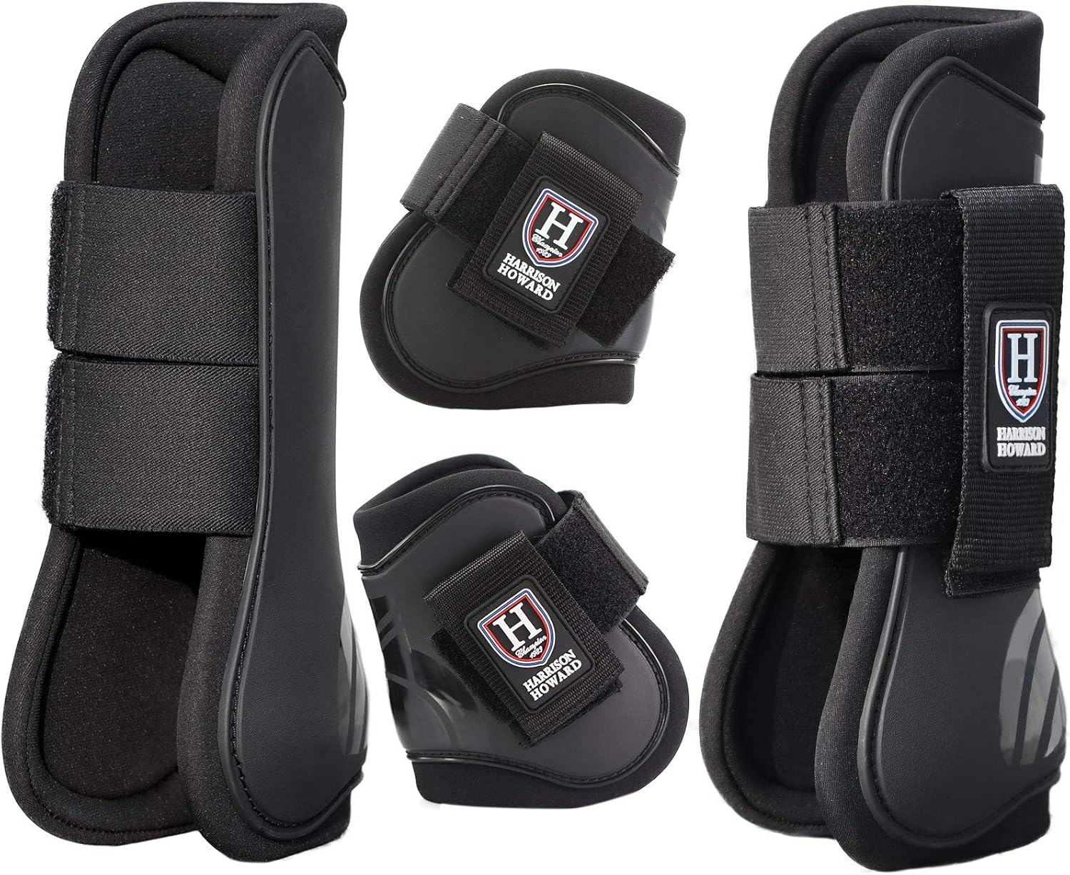 EXTRAORDINARY PROTECTION WITH STYLE: Outer is made of a hardened shell and inner Neoprene for added durability. These boots are providing not only protection to the horse’s legs but also a unique flair to his appearance. SHOCK ABSORPTION AND PROTECTION: The boots are made of a highly durable PU shell and shock absorbing Neoprene, gives the horse extra tendon support and protection from his back hooves, keep their vulnerable tendons and ligaments well protected for a long period of time. COMFORT FIT WITH SOFT LINING: These boots are designed to fit snugly and cover all the vital areas, combined with a thickened elastic inner cushion design for a comfort fit. The soft lining is a smart precaution for absorbing impact against strikes, fast-paced activities like show jumping, endurance, and turnouts, etc., also great for preventing rubbing and soreness. QUICK TO APPLY, WITHOUT SLIPPING: Closes and tightens with double thickness elastic strap and reinforced hook-and-loop closures, providing a quick and convenient way to install/release the boots and stop them slipping, sliding or twisting. Multiple adjustment buckles for more precise adjustment of boots, also holds very well in all types of conditions/weather. PRACTICAL & PORTABLE, EASY TO CLEAN: A pair of boots that have high practicability, suitable to use daily, easy to carry elsewhere. Easy cleaning process: simply clean with a brush or wipe with a wet cloth and the boots are as good as new again. › See more product details