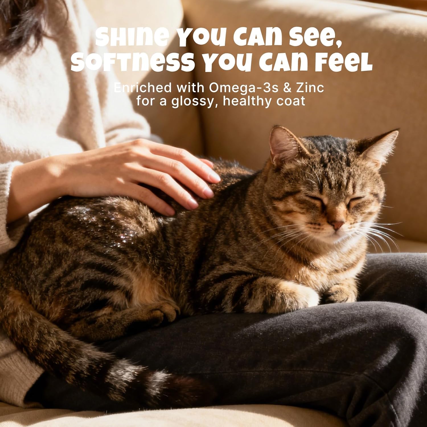 About this item TREAT-FIRST BEAUTY CARE – Creamy reward format delivers Omega-rich nourishment in a way cats crave, helping support smooth skin hydration and visible coat glow without oily residue. VISIBLE REAL INGREDIENTS – Real fish roe bits you can see reinforce premium ingredient integrity while supplying marine nutrients that feed coat softness from within. CUDDLE-READY RESULTS – Helps your cat’s fur feel noticeably softer during brushing, petting, and nap-time cuddles where shine and smoothness matter most. STRESS-FREE MEDS & RECOVERY SUPPORT – Creamy lickable texture effortlessly mixes with pills or powders, turning stressful med time into a comforting treat while supporting daily nutrition during sensitive recovery or maintenance periods. › See more product details